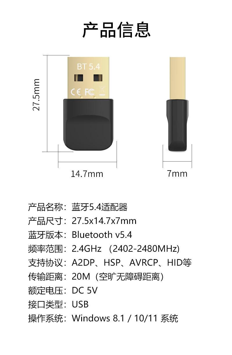 Novo Adaptador Receptor Bluetooth Usb5.4 Transmissor Bluetooth Sem Driver Áudio Automotivo Atacado Transfronteiriço