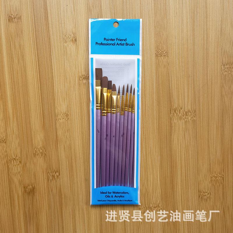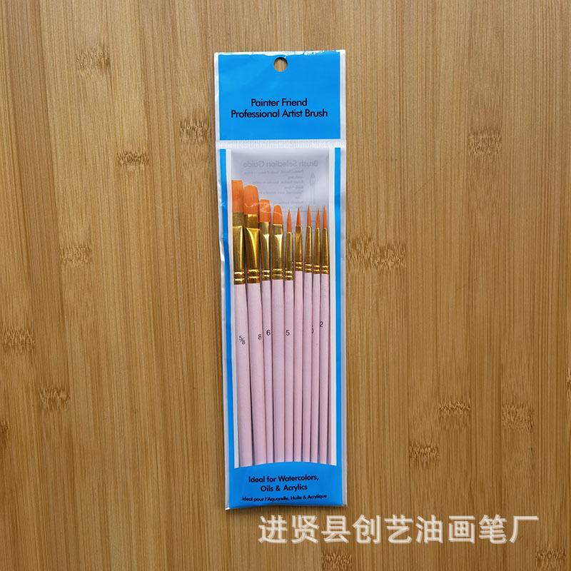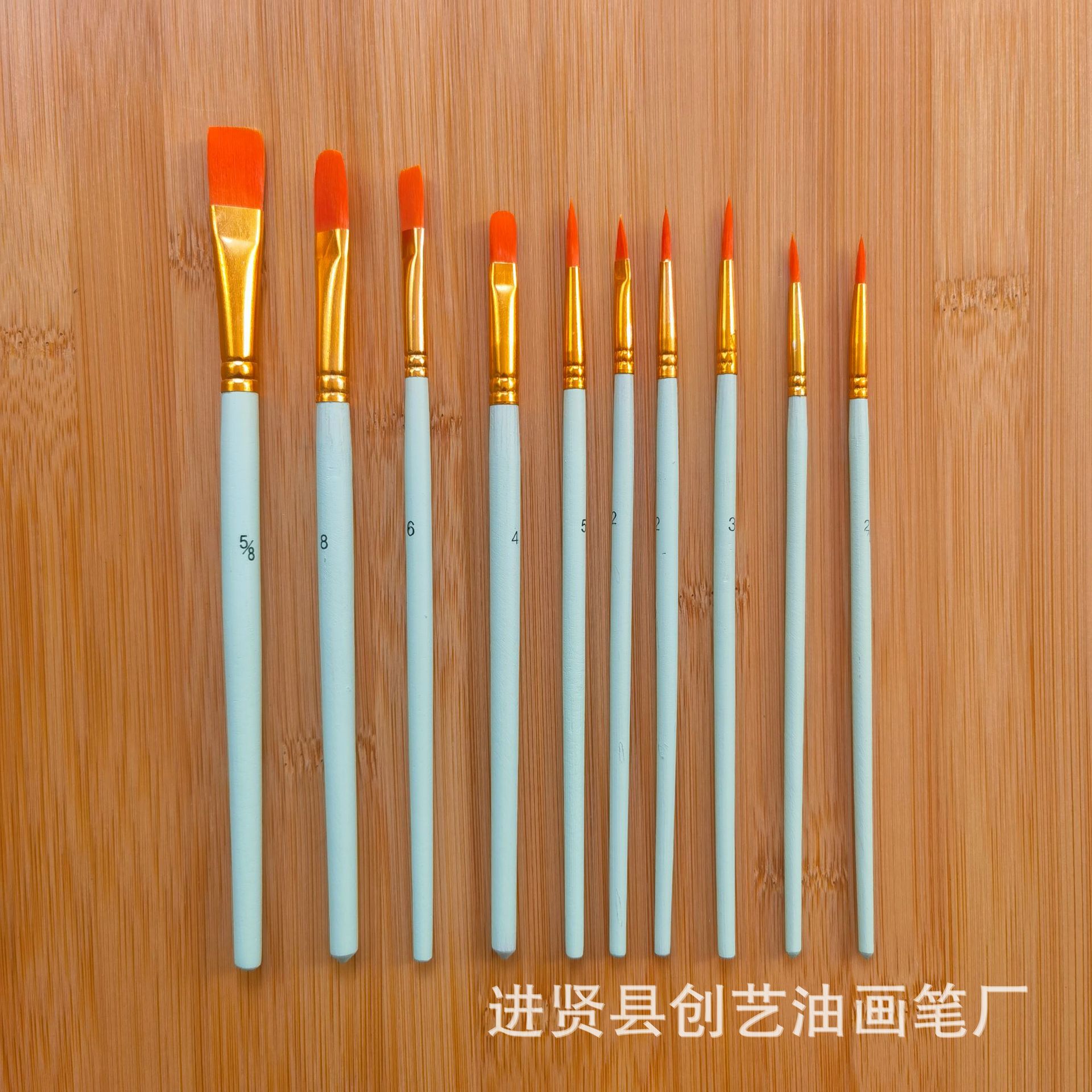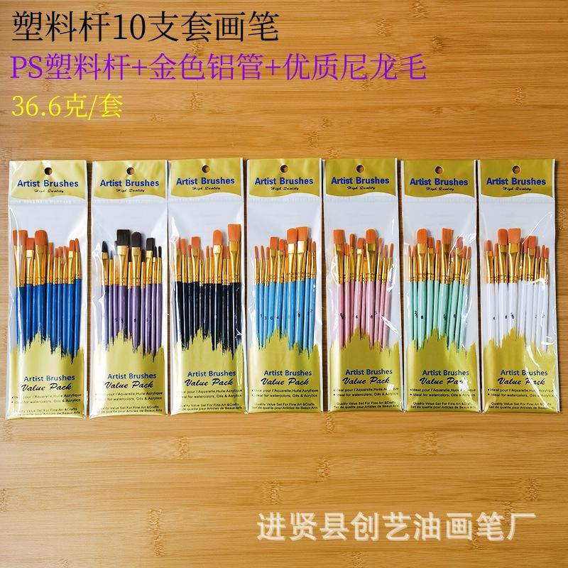 Conjunto de 10 Pincéis com Cabo de Plástico: