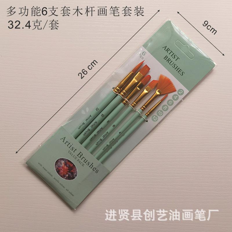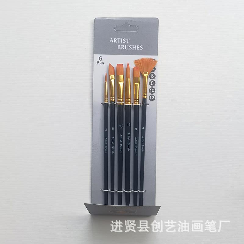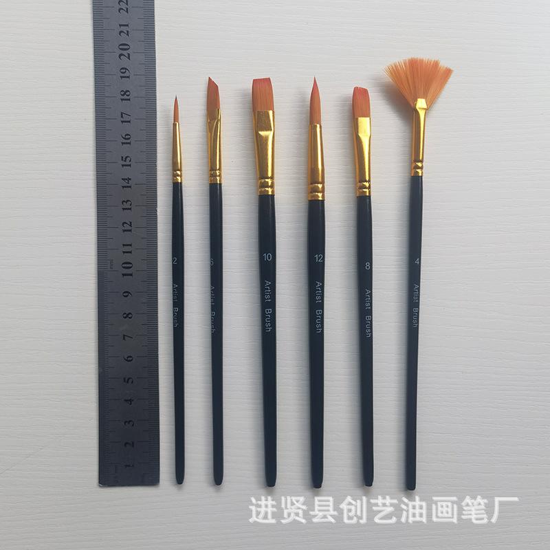 Conjunto de 6 Pincéis de Pintura de Cabelo de Nylon com Cabo Marrom e Rabo Preto: