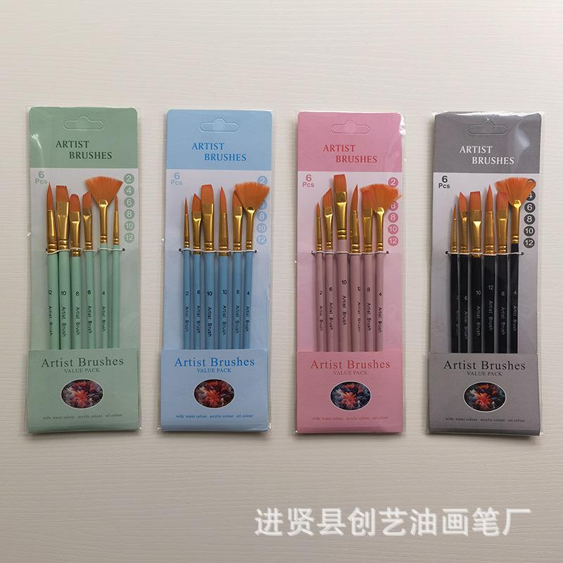 Conjunto de Pincéis de Pintura de Cabelo de Nylon Colorido Macaron de 6 peças: