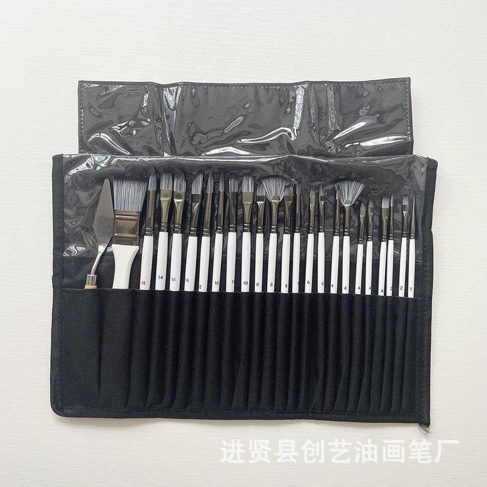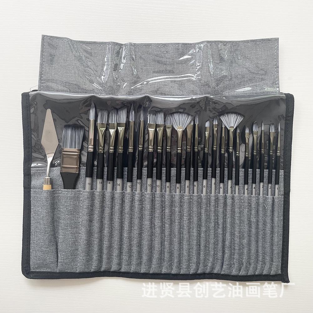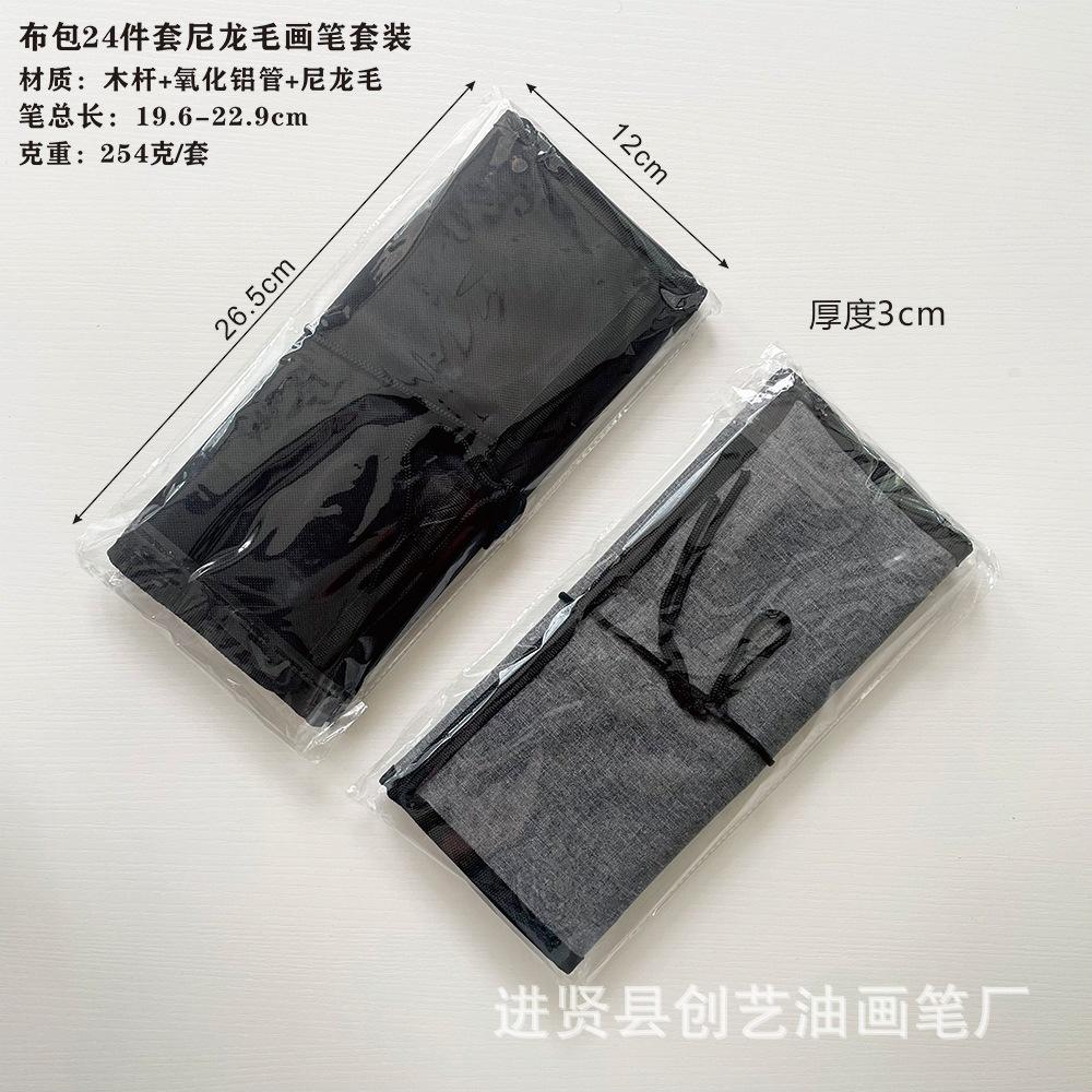 Conjunto de Pincéis de Cabelo de Nylon para Pintura de 24 Peças com Estojo de Enrolar de Lona: