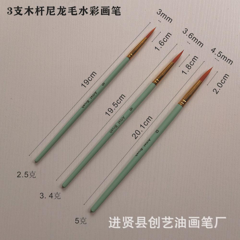 Características:A cabeça do pincel é feita de cerdas de nylon de alta qualidade, as pontas das cerdas são finas, flexíveis e elásticas, têm boa absorção de água e convergem automaticamente para um ponto ao pintar. O cabo de madeira é feito de madeira de bétula e pintado, proporcionando uma pegada confortável.