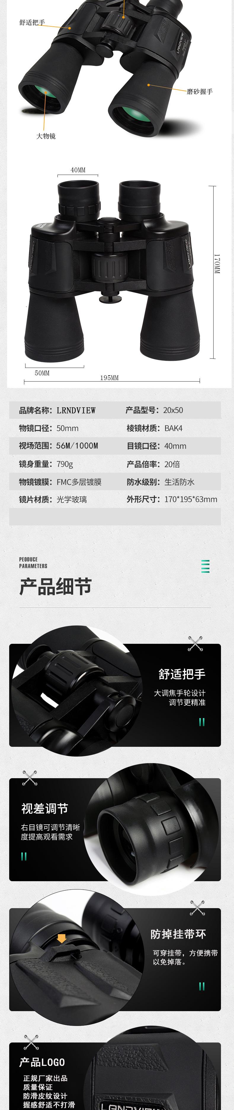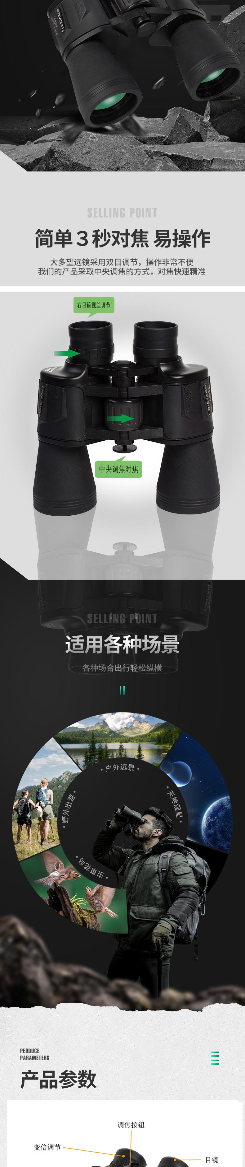 Binóculos de lâmina 20X50 por atacado de fábrica de alta potência HD adulto visão noturna com pouca luz viagem ao ar livre para encontrar abelhas