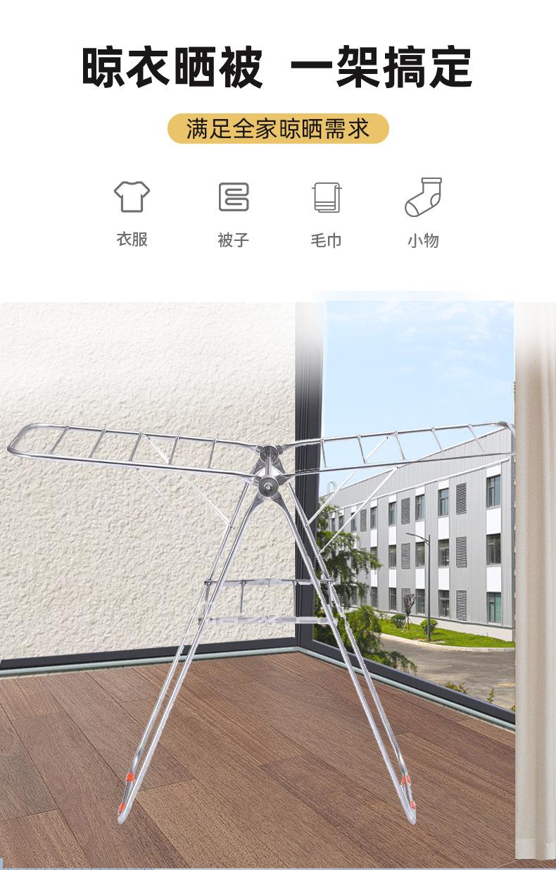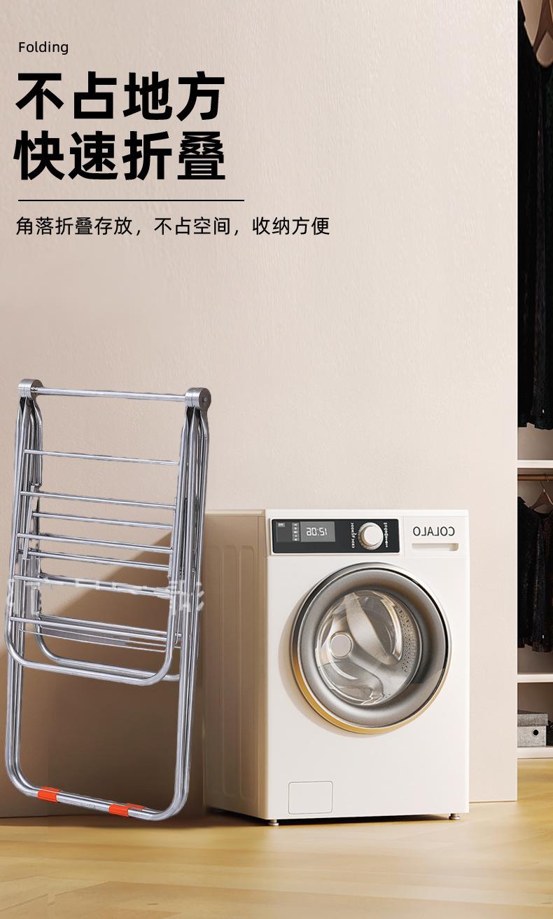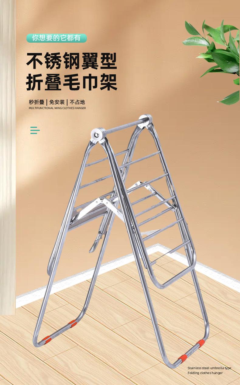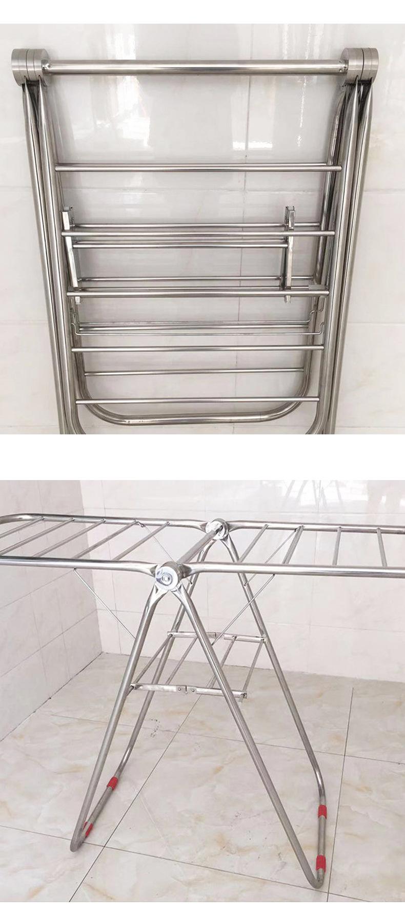 Estendal de aço inoxidável para secagem de piso interno e externo, dobrável, espesso, varanda, toalheiro móvel de camada dupla