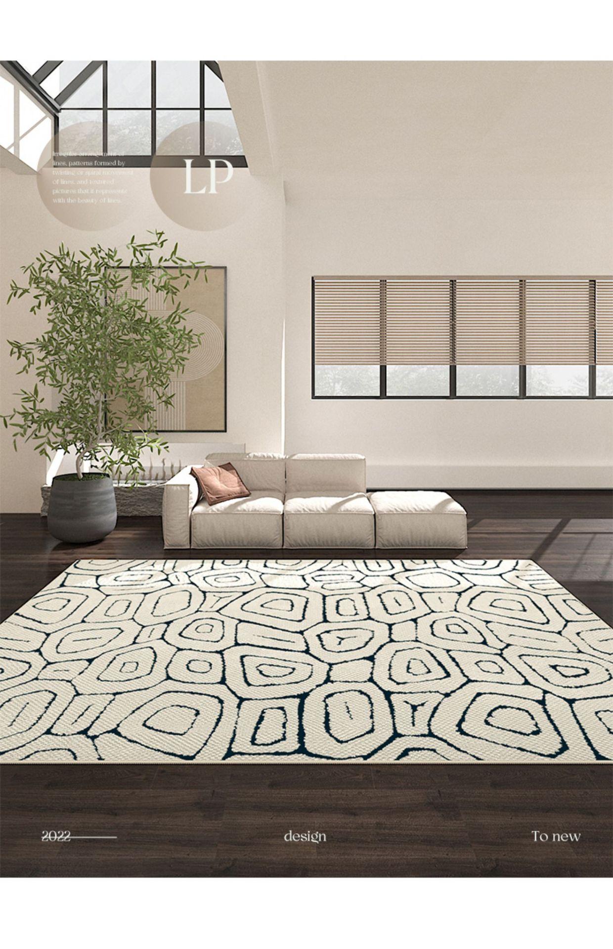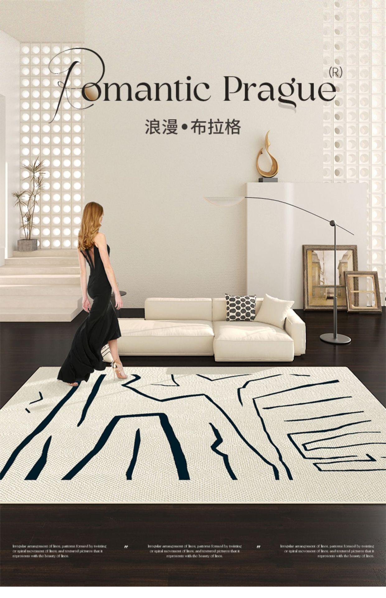 Tapete de sala de estar estilo retrô, sofá francês, mesa de centro, cobertor de cabeceira avançado, tapete antiderrapante e sem manutenção