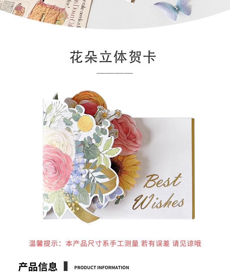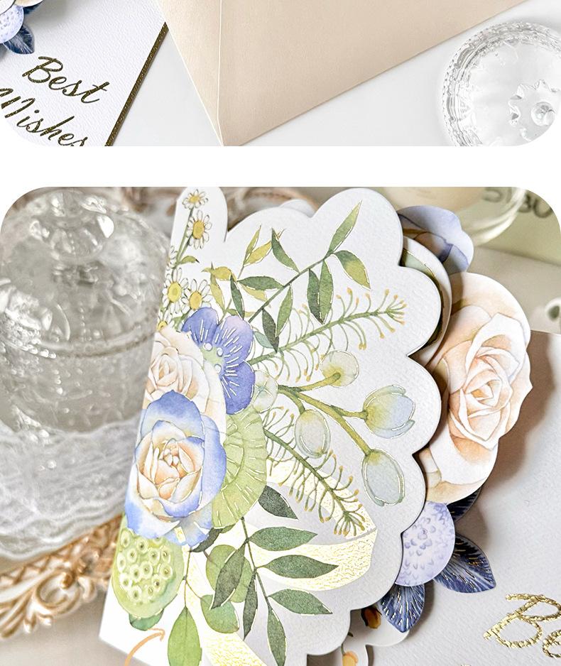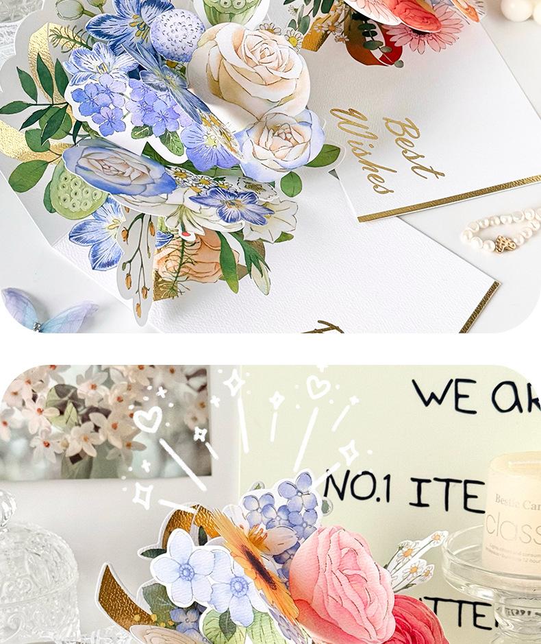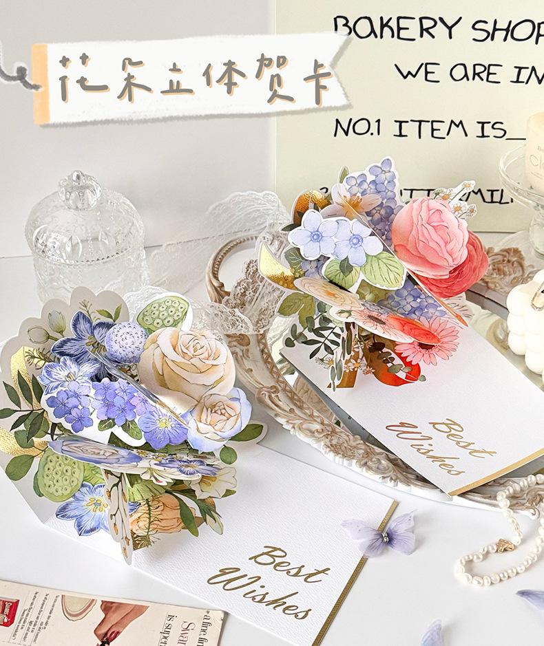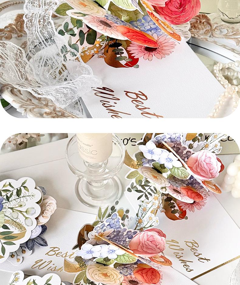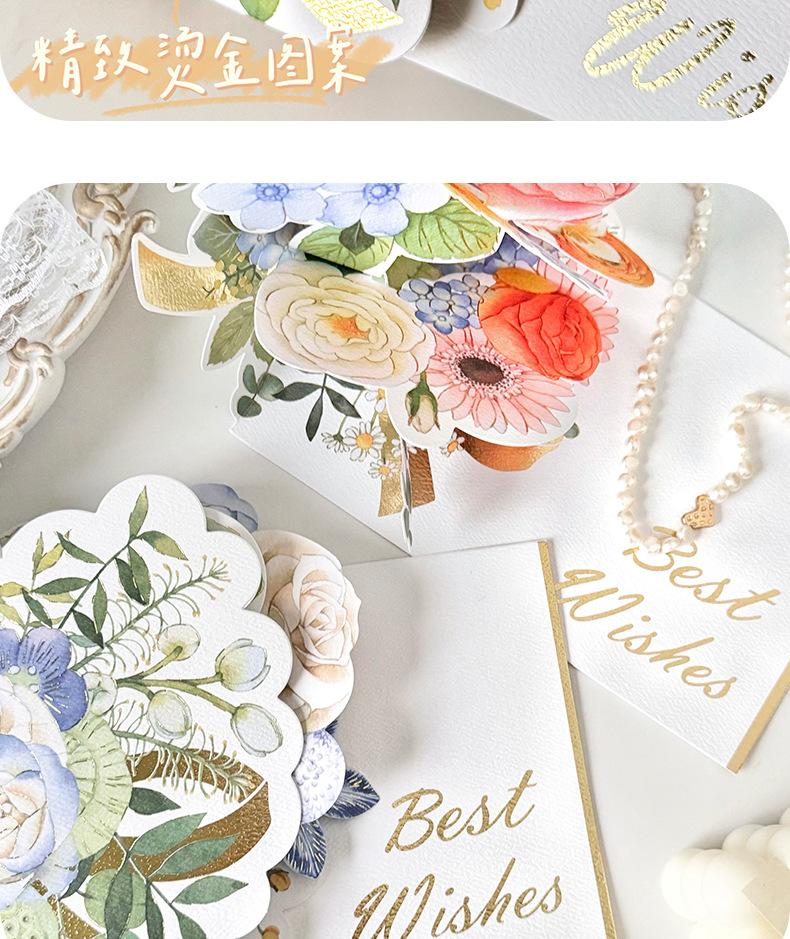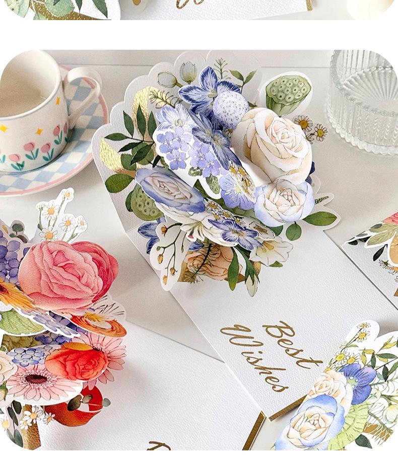 Cartão de felicitações de aniversário com flores em aquarela criativas para amantes, cartão de felicitações estéreo, cartão de bênção surpresa 3D, envelope