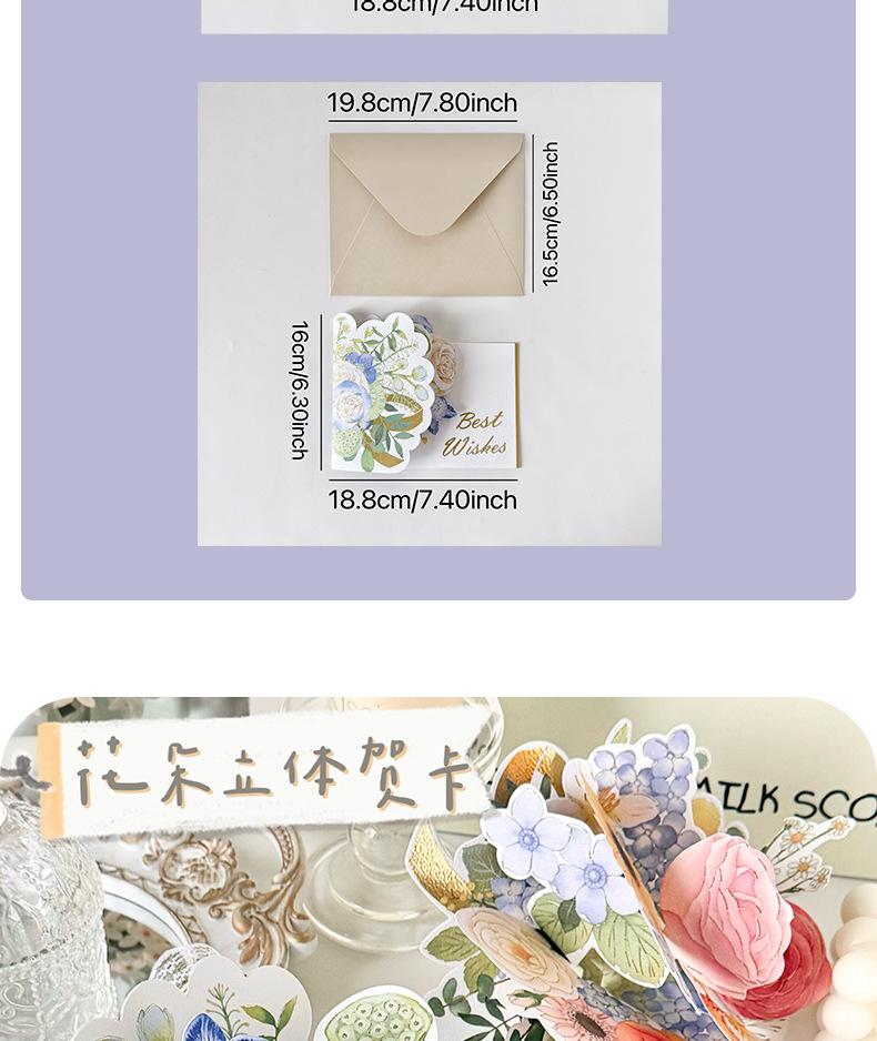 Large three-dimensional red flower greeting card, Large three-dimensional blue flower greeting card