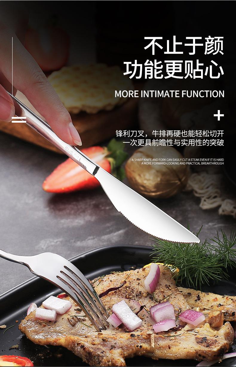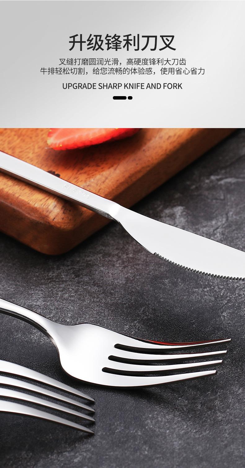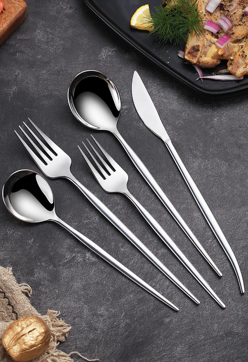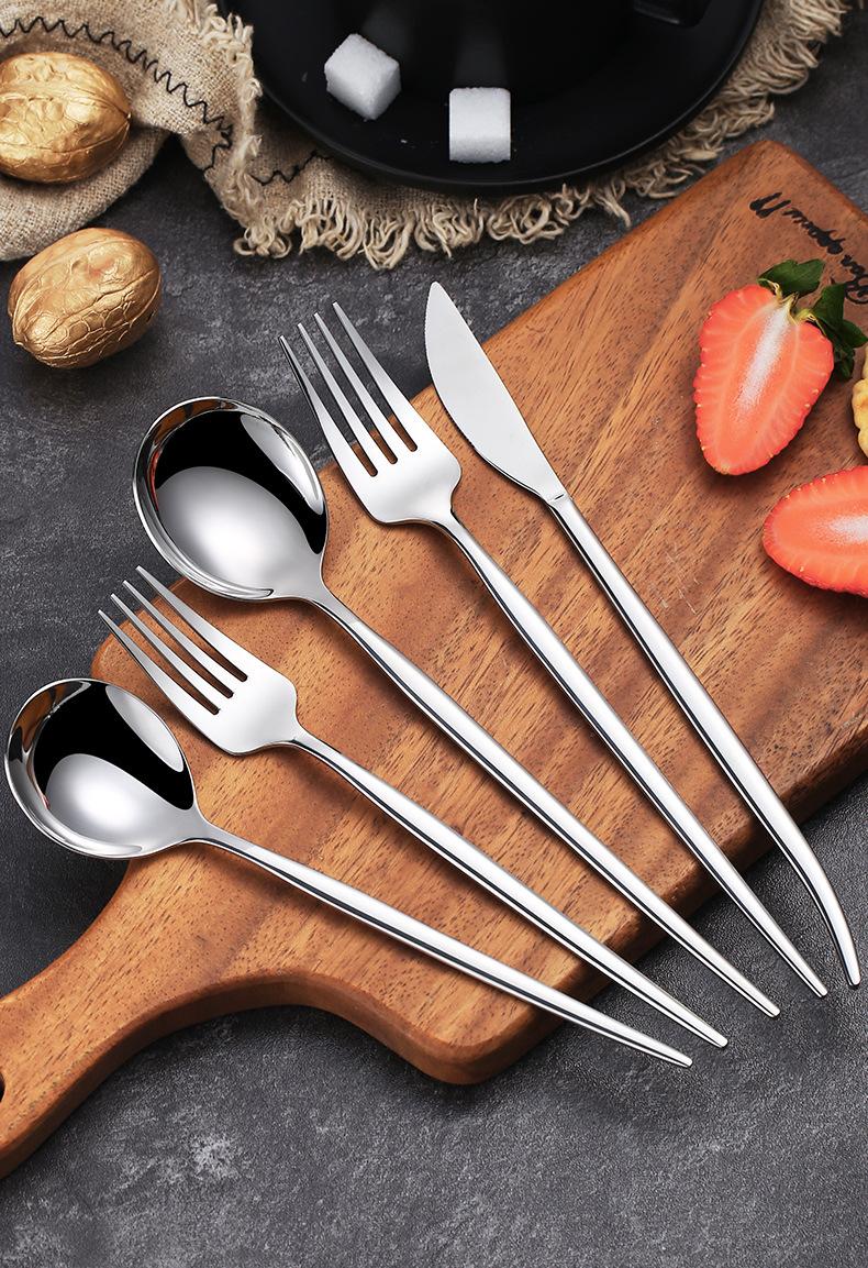 Conjunto de cinco peças de faca, garfo e colher para comida ocidental, conjunto de talheres de aço inoxidável, faca e garfo para bife, colher redonda de aço inoxidável 304
