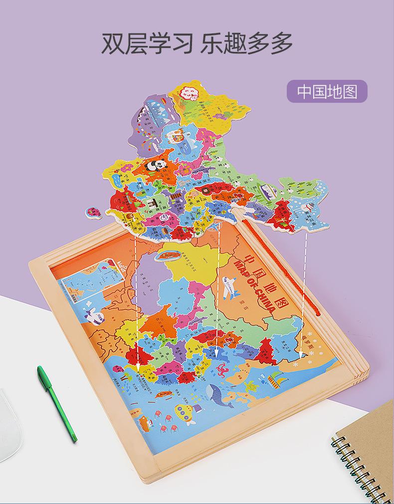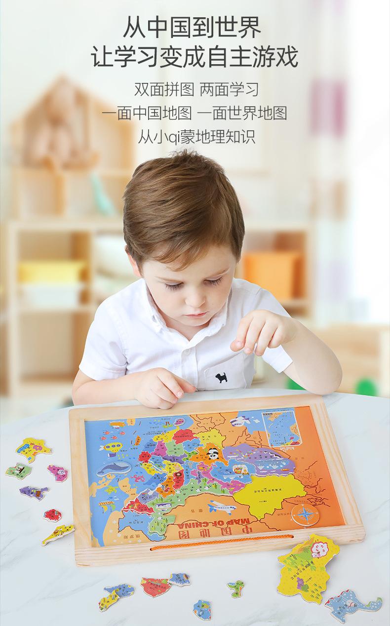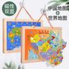 [small children's edition 2-in-1] wooden magnetic world puzzle