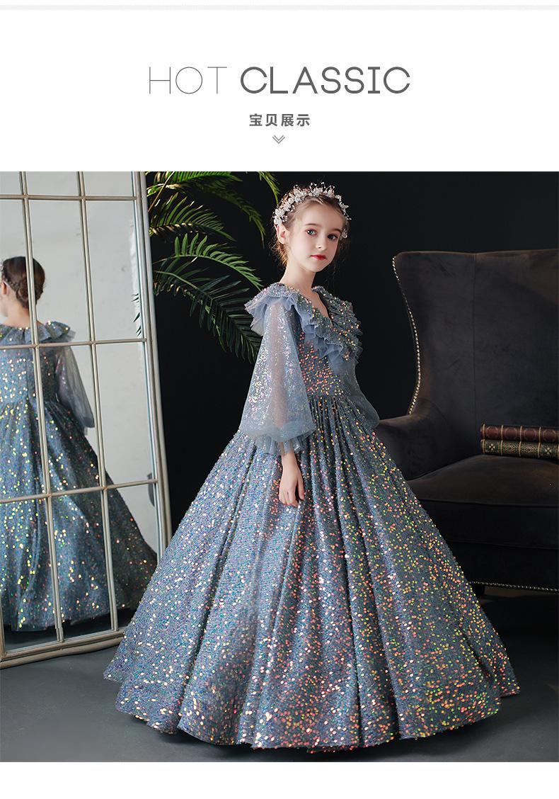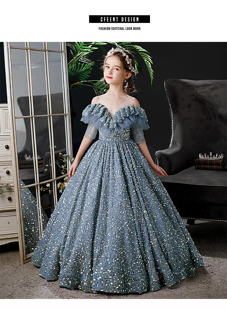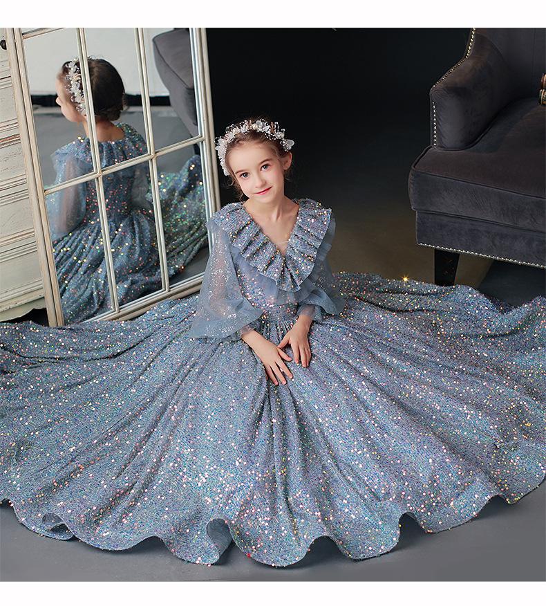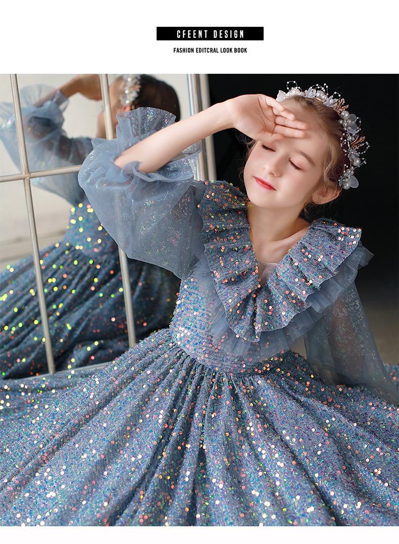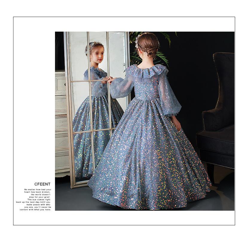 Vestido de Noite para Meninas Transfronteiriço 2025 Novo Vestido de Princesa de Paetês de Alta Qualidade Aniversário Roupa de Apresentação Infantil
