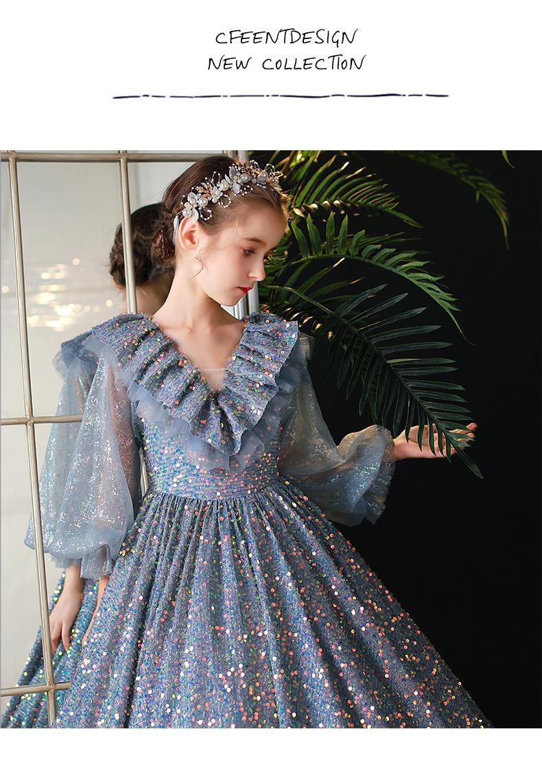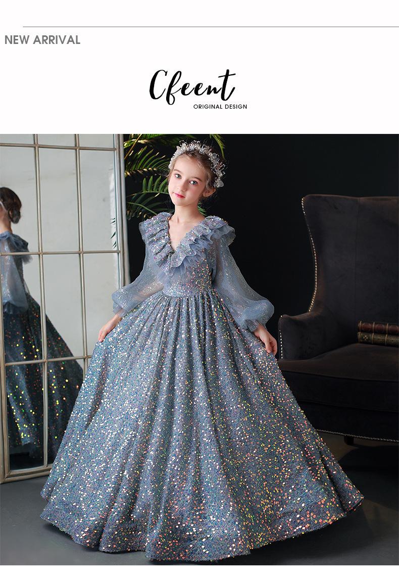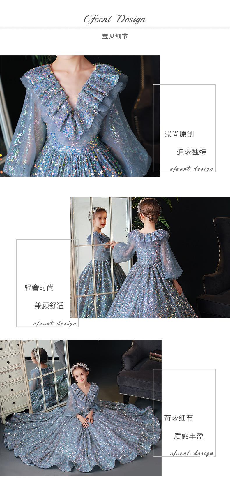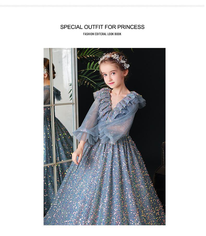 Vestido de Noite para Meninas Transfronteiriço 2025 Novo Vestido de Princesa de Paetês de Alta Qualidade Aniversário Roupa de Apresentação Infantil