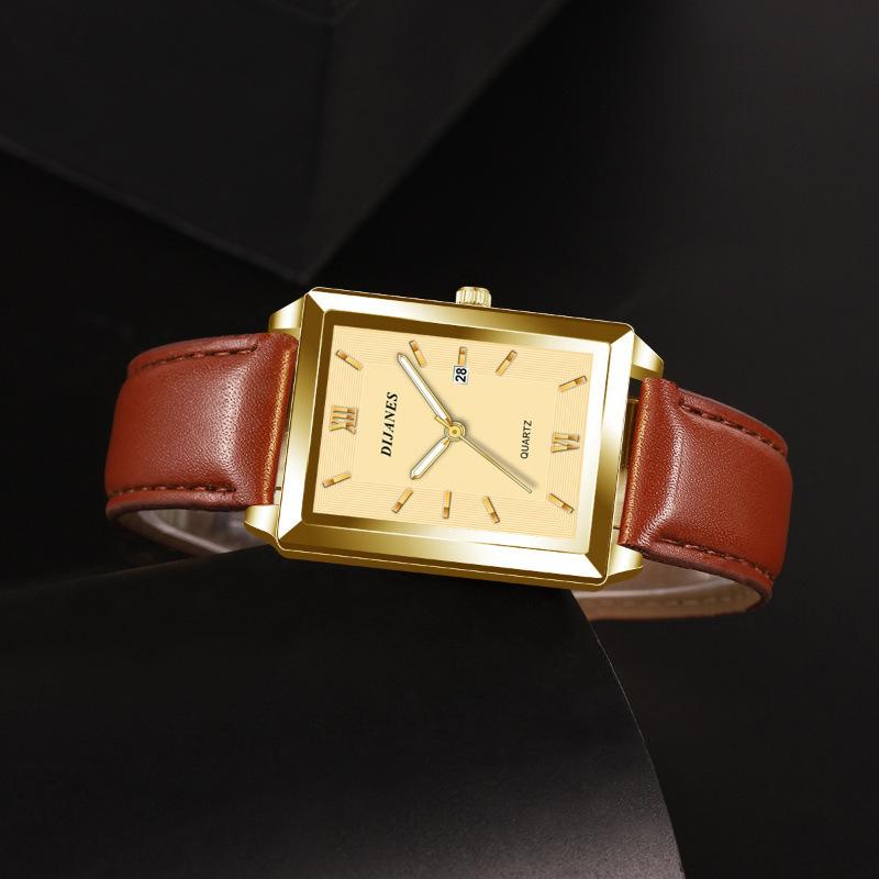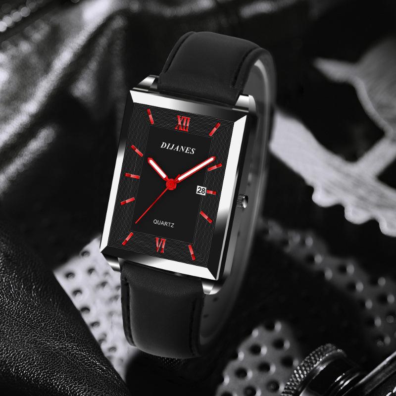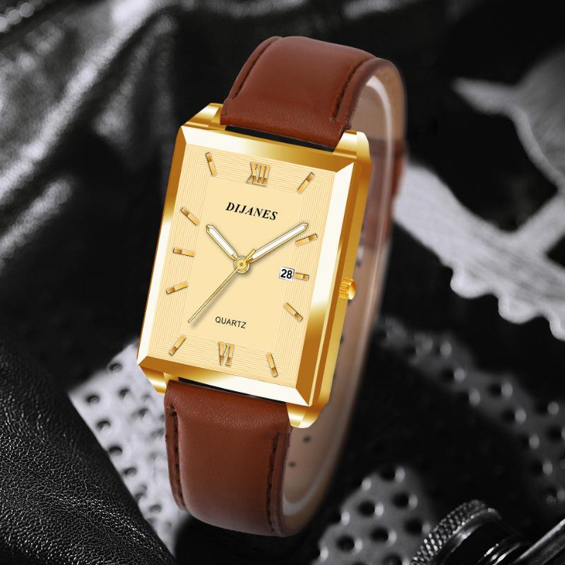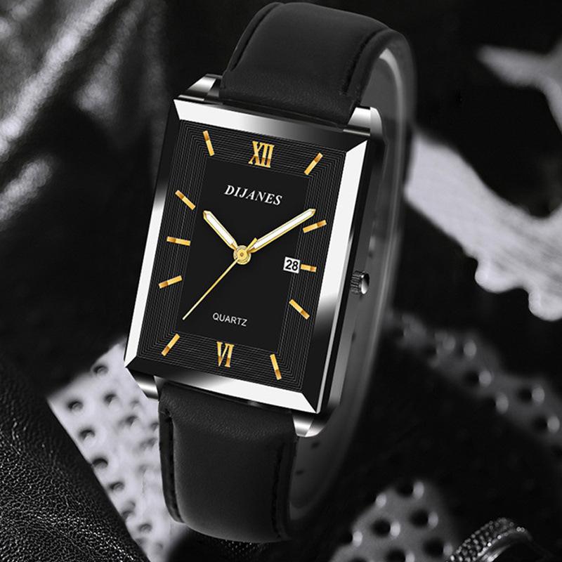 DIJANES Novo Relógio Masculino Casual de Couro Relógio de Quartzo Quadrado Relógio de Estudante Estilo Coreano Relógio com Calendário Masculino