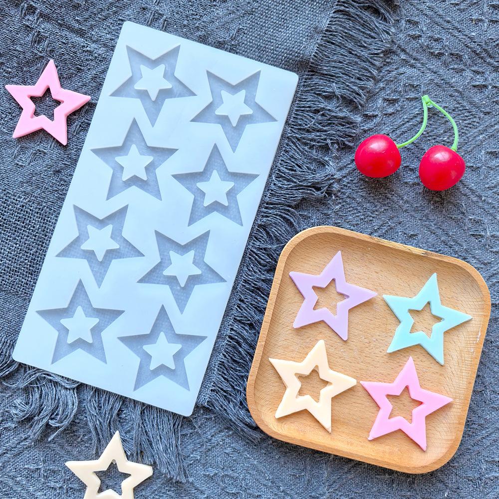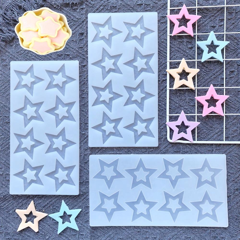 Molde de silicone para chocolate com estrela de cinco pontas oca, ferramenta de decoração para bolo com cola, molde 17335