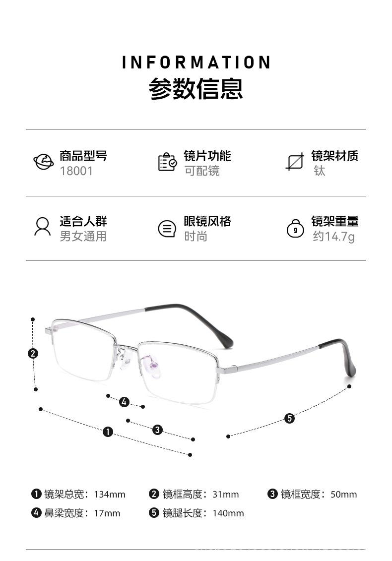 Danyang nova armação de óculos de miopia ultraleve de liga de titânio 18001 anti-luz azul meia armação negócios olhos planos atacado