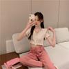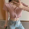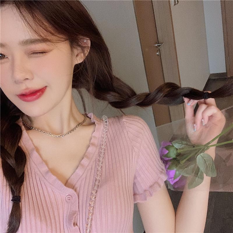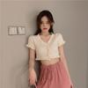 Tricô de Manga Curta para Mulheres Verão Casaco Fino Curto Cintura Alta Top Cropped Transfronteiriço Outono Novo Decote V Cardigan Bm