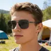 Óculos de Sol Polarizados de Nylon com Armação Quadrada Nova Moda 2025 para Homens com Hastes de Metal e Lentes Duplas, Óculos de Sol com Proteção Solar para Homens, Transfronteiriço