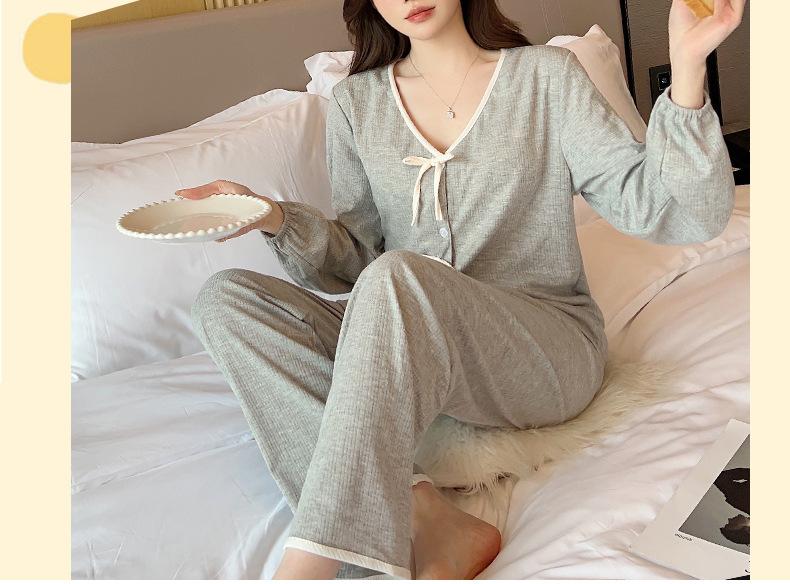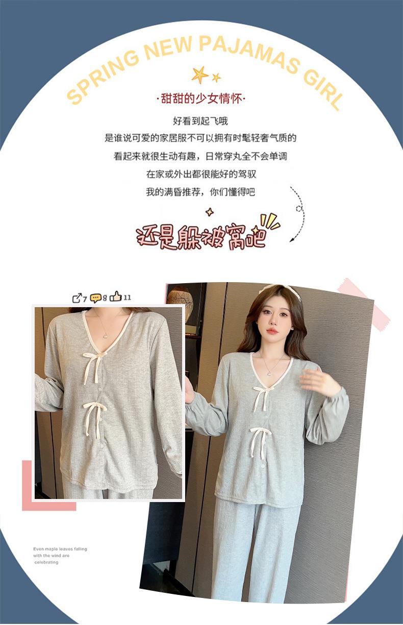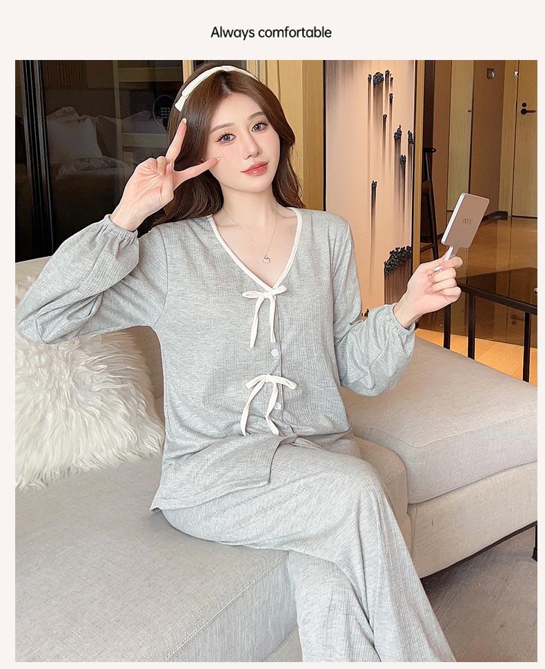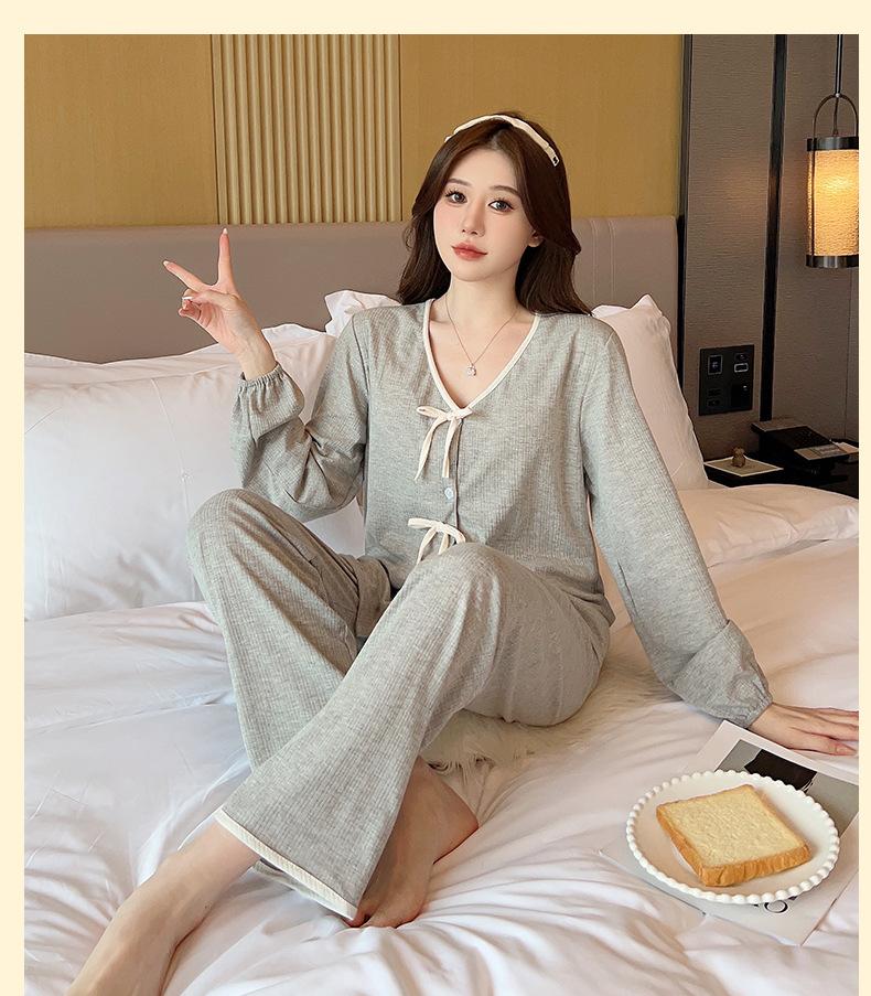 Compre Pijama feminina com bojo de peito Primavera e Outono novo cor sólida manga comprida terno estilo coreano primavera solto doce fofo roupa de casa no atacado no Joom.pro