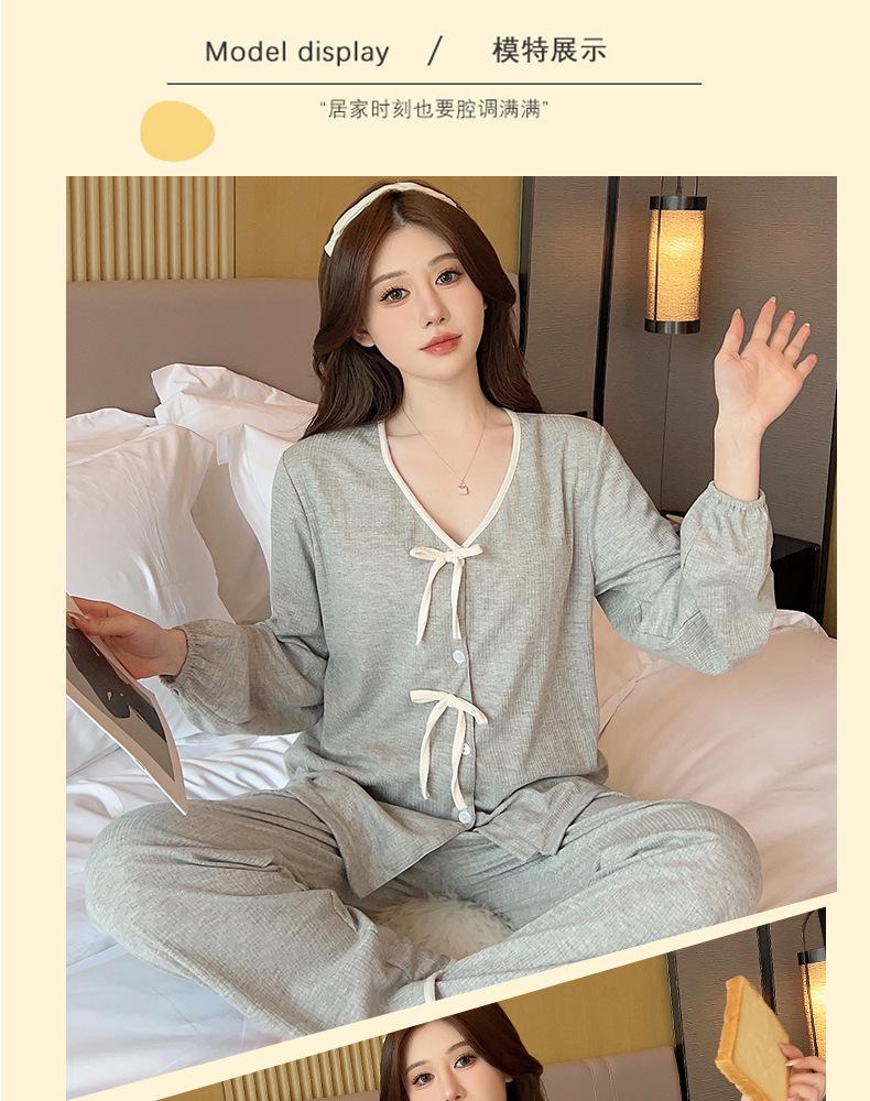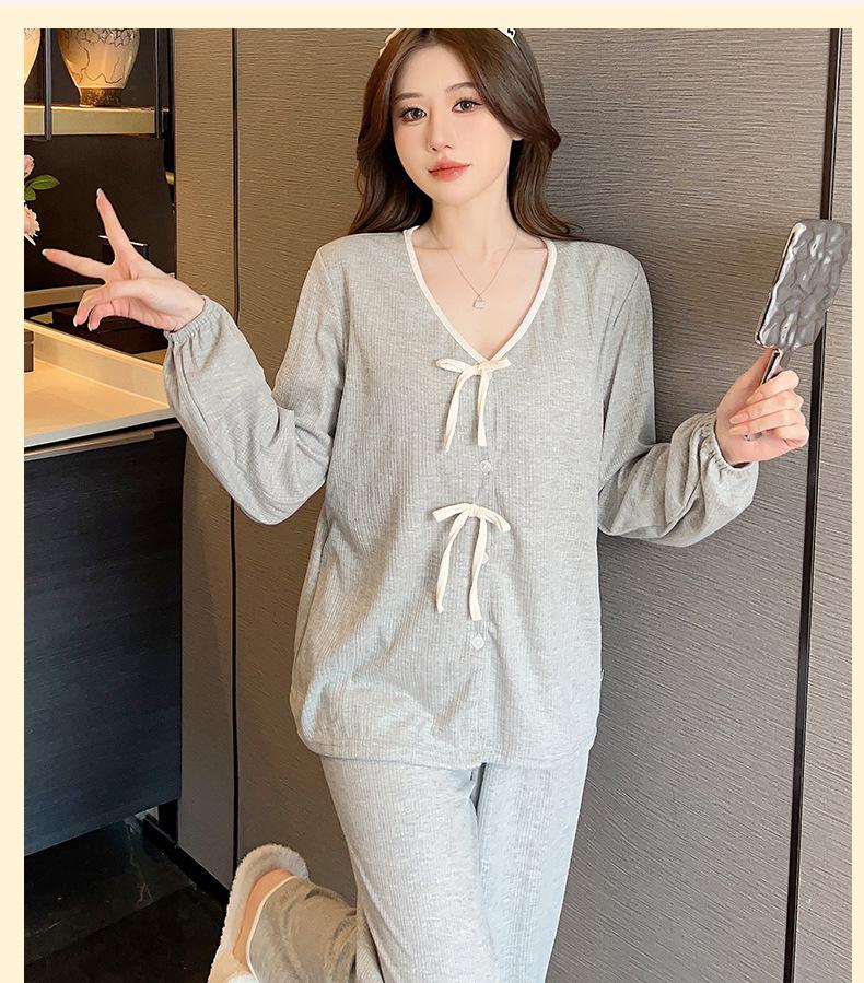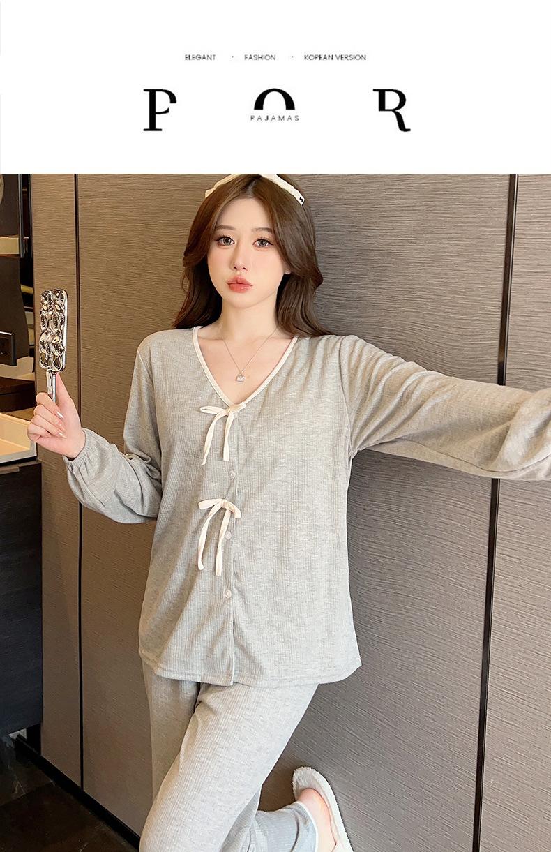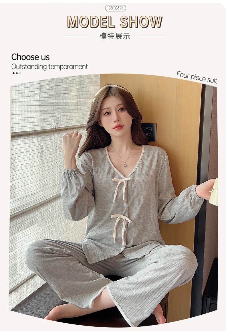 Compre Pijama feminina com bojo de peito Primavera e Outono novo cor sólida manga comprida terno estilo coreano primavera solto doce fofo roupa de casa no atacado no Joom.pro