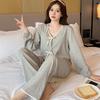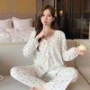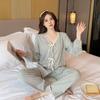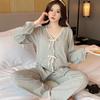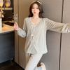 Pijama feminina com bojo de peito Primavera e Outono novo cor sólida manga comprida terno estilo coreano primavera solto doce fofo roupa de casa