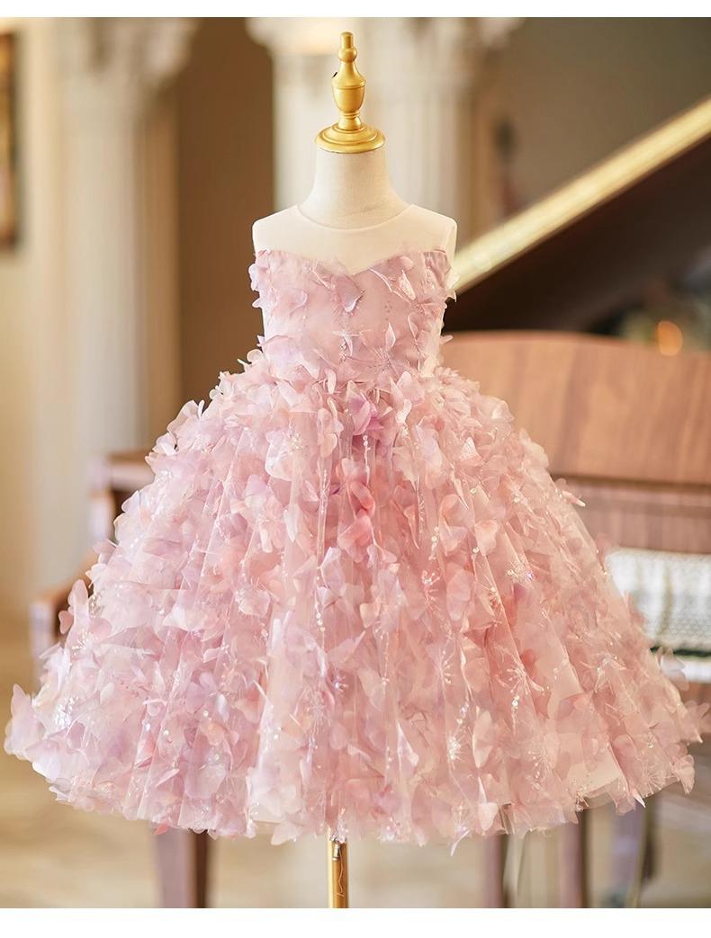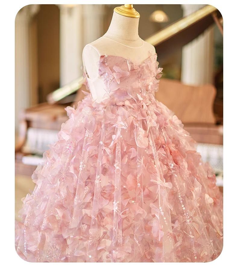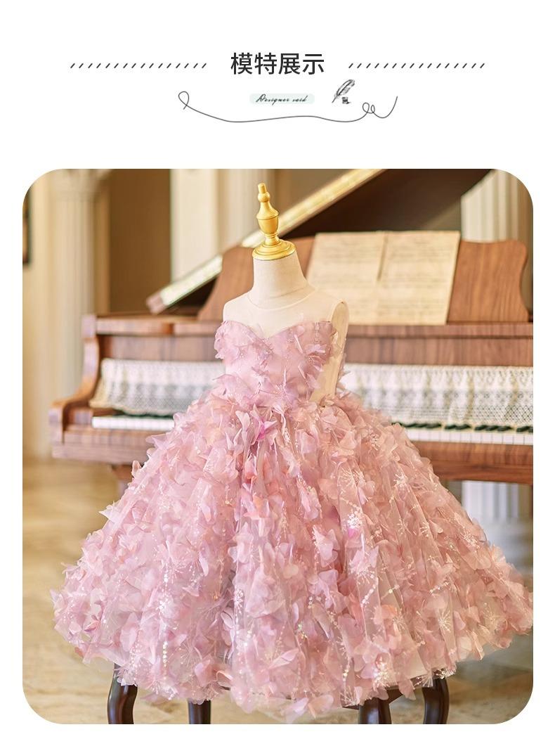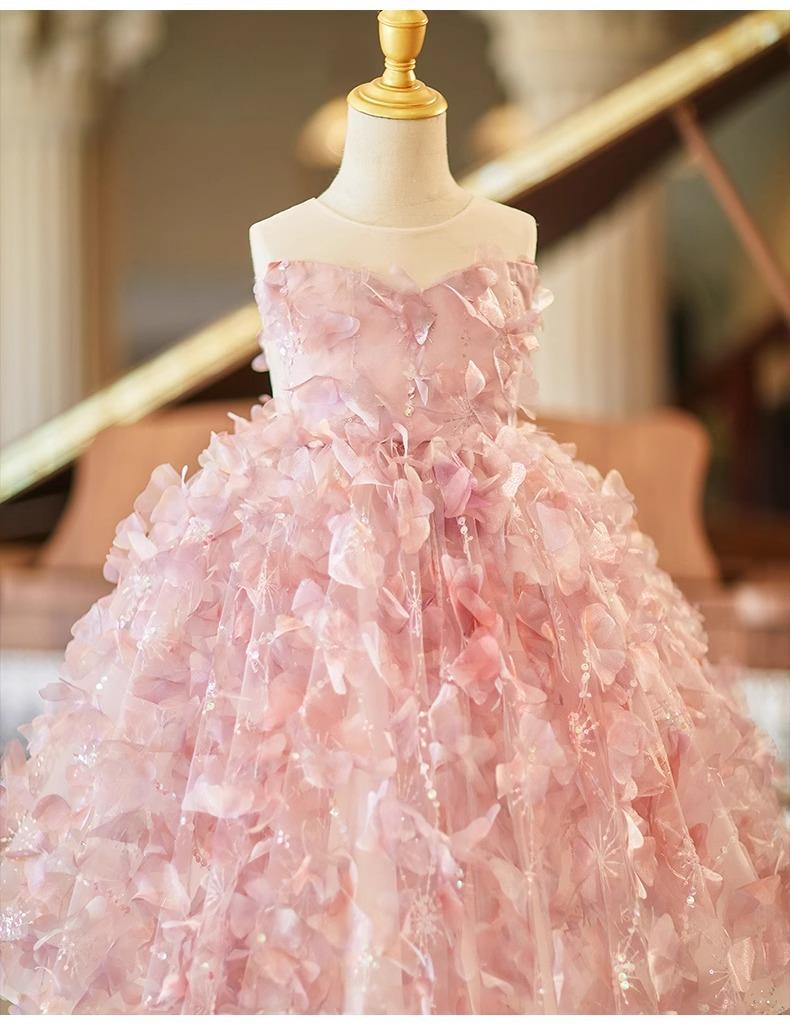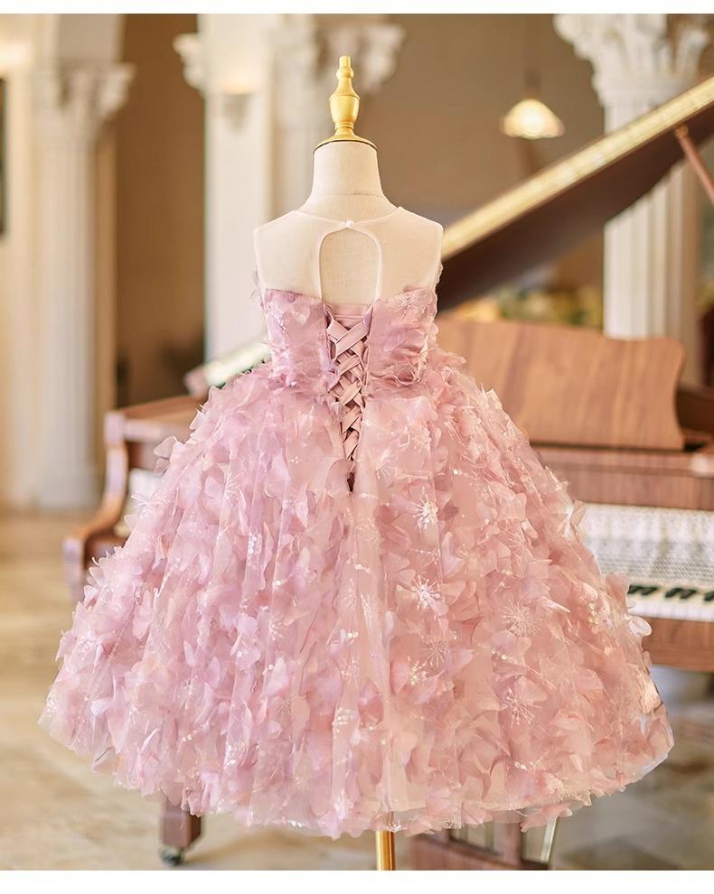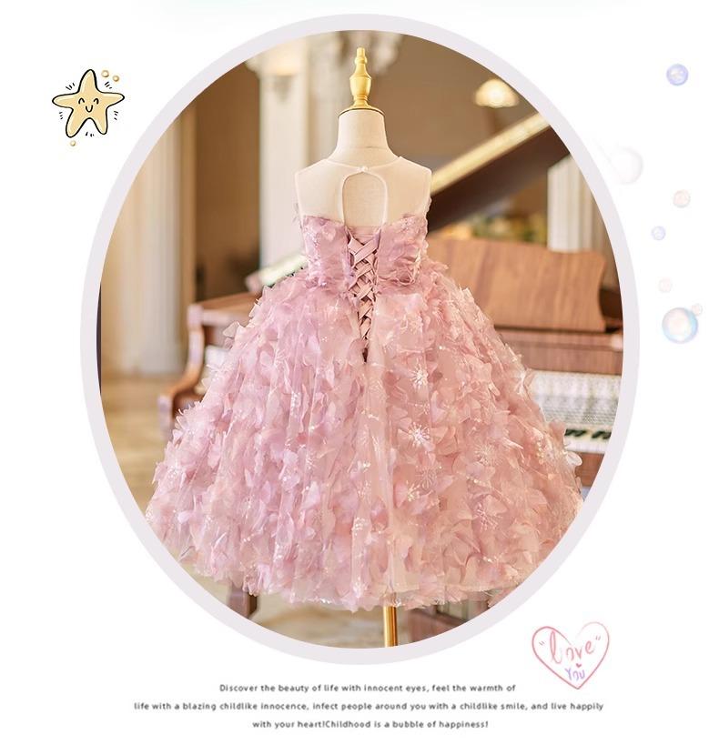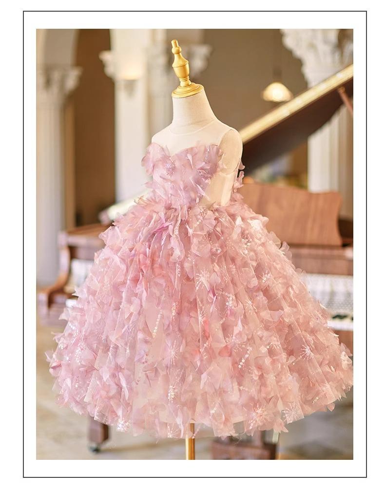 Daminha Casamento Menina Vestido Bonito de Aniversário de Alta Qualidade Rosa Luxo Leve Menina Apresentando Tocando Piano Vestido de Princesa
