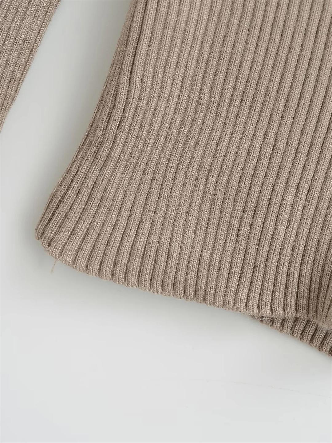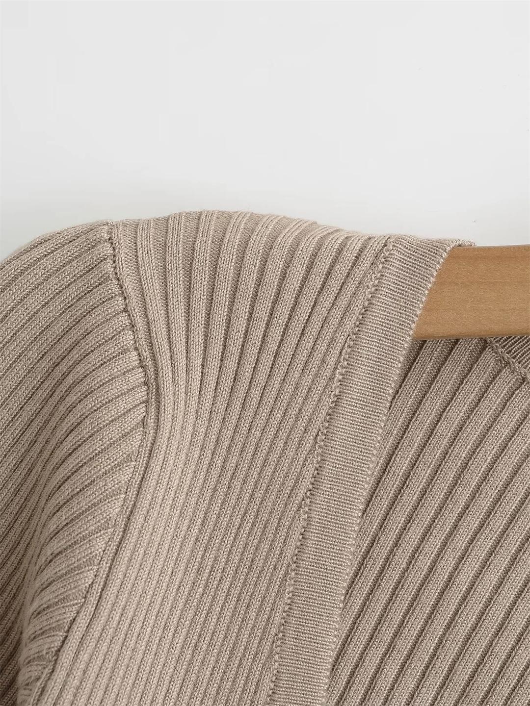 Tricô Justo Sexy com Botões Decote V Profundo Manga Longa para Mulheres Pulôver Curto Sexy com Umbigo à Mostra de Cintura Alta