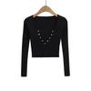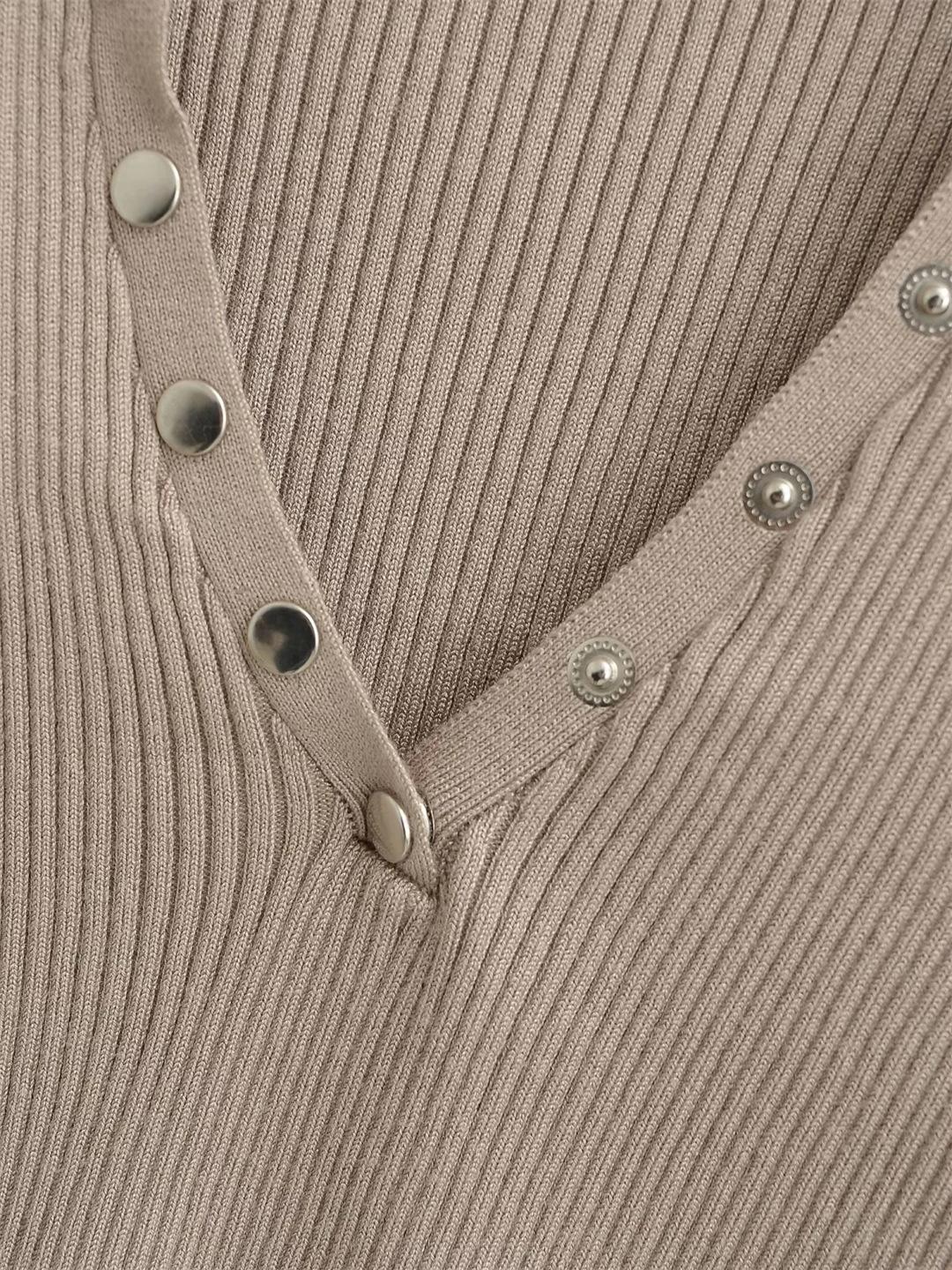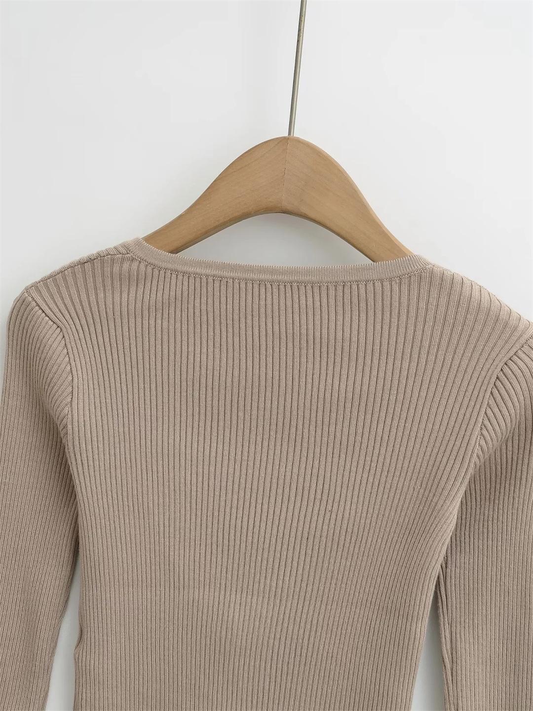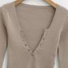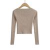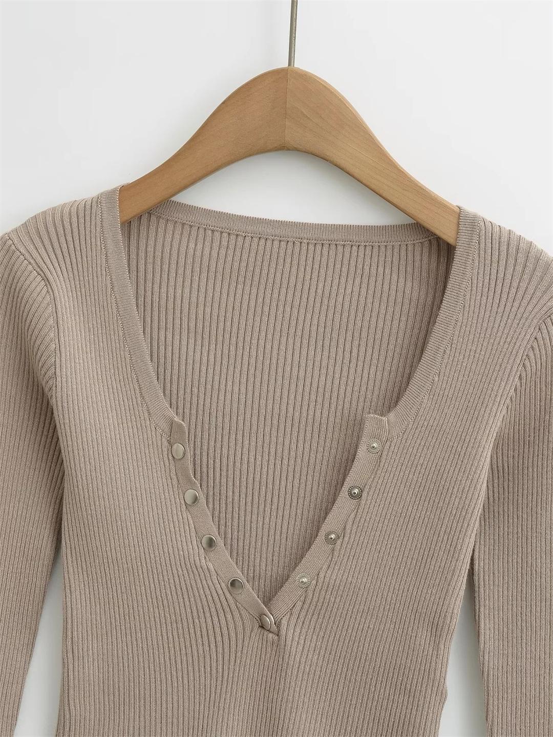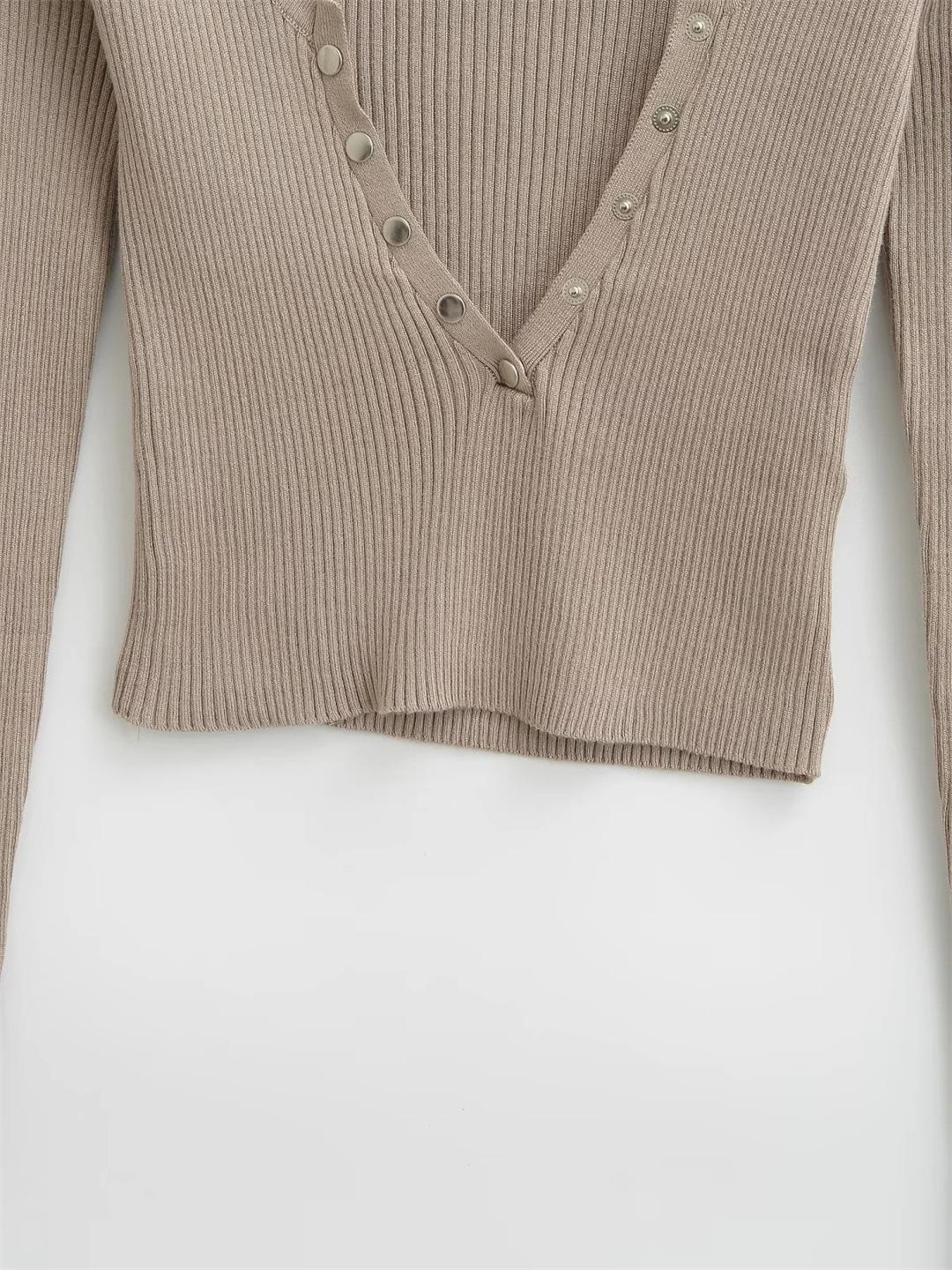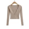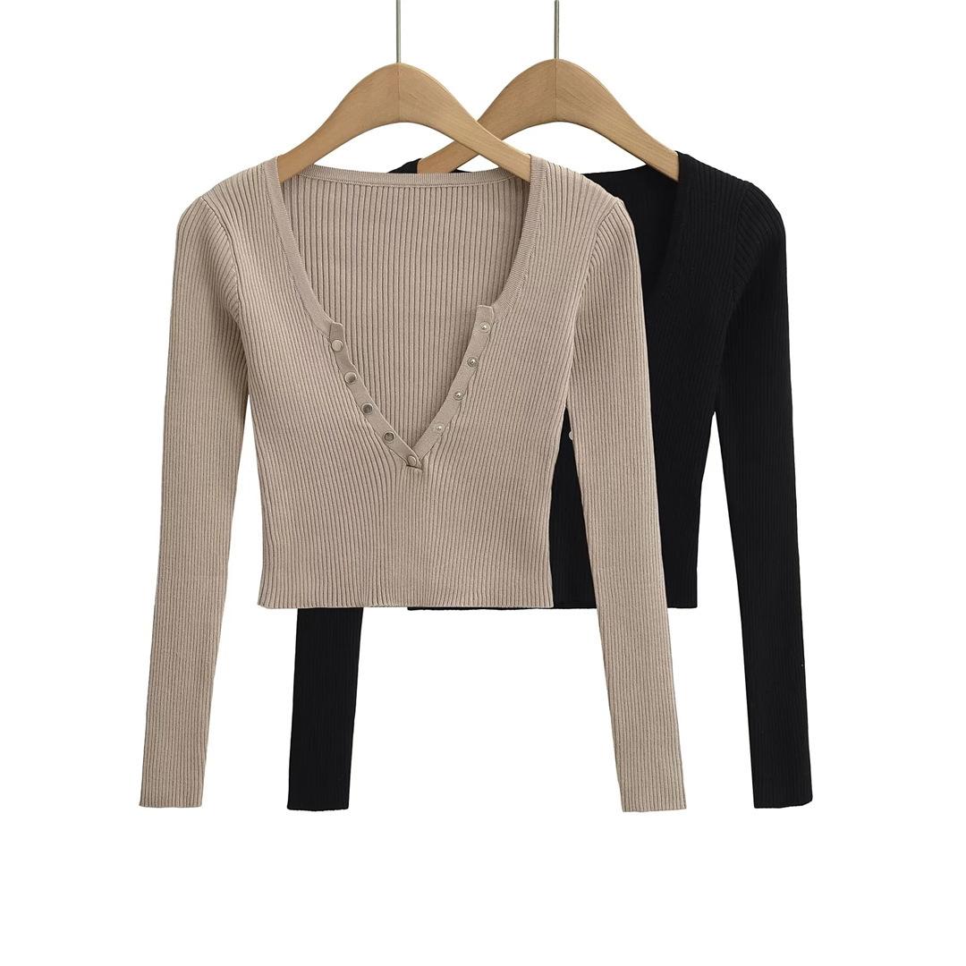 Compre Tricô Justo Sexy com Botões Decote V Profundo Manga Longa para Mulheres Pulôver Curto Sexy com Umbigo à Mostra de Cintura Alta no atacado no Joom.pro