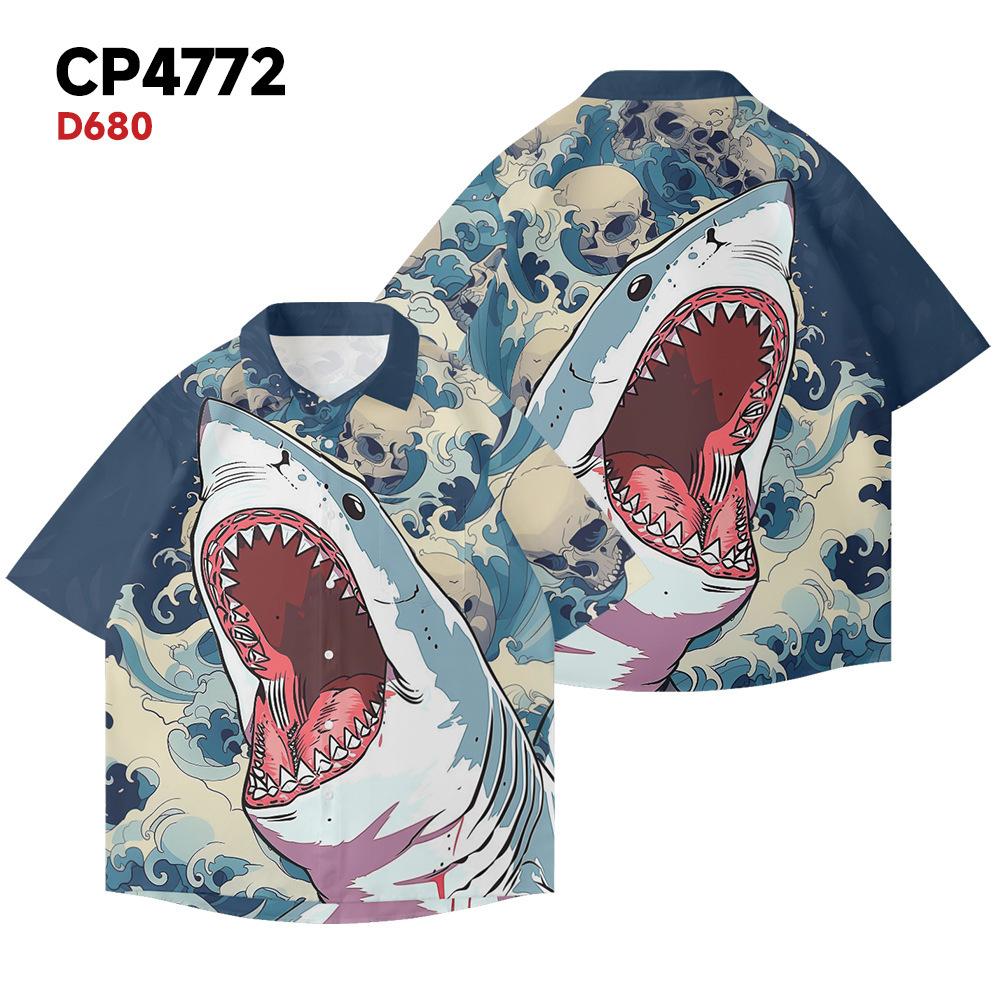 2024 Nova Camisa Masculina 3D Moda Estampada Padrão Praia Férias Solto Casual Manga Curta Camisa para Homens