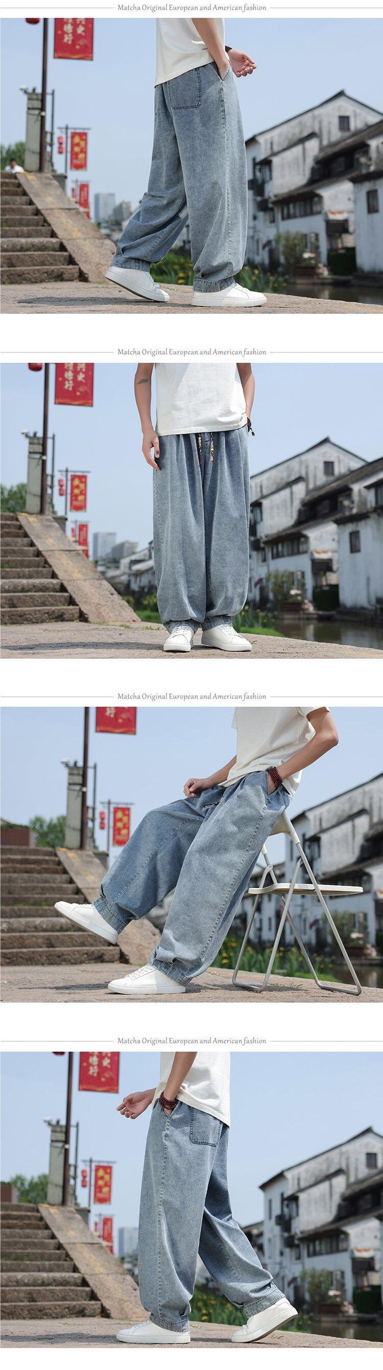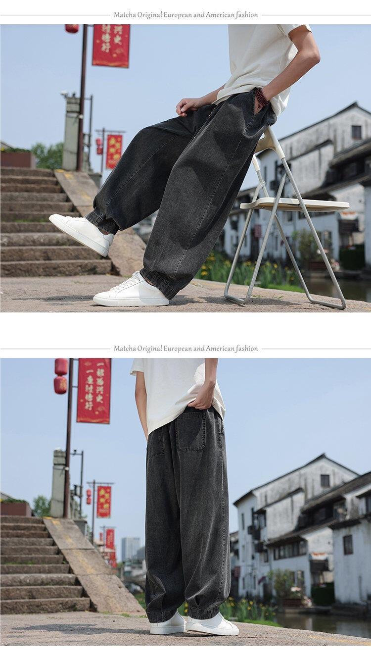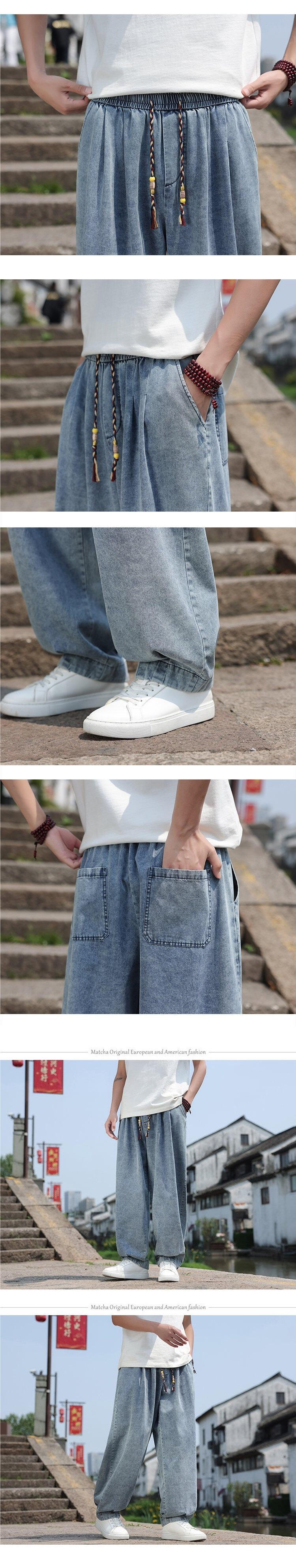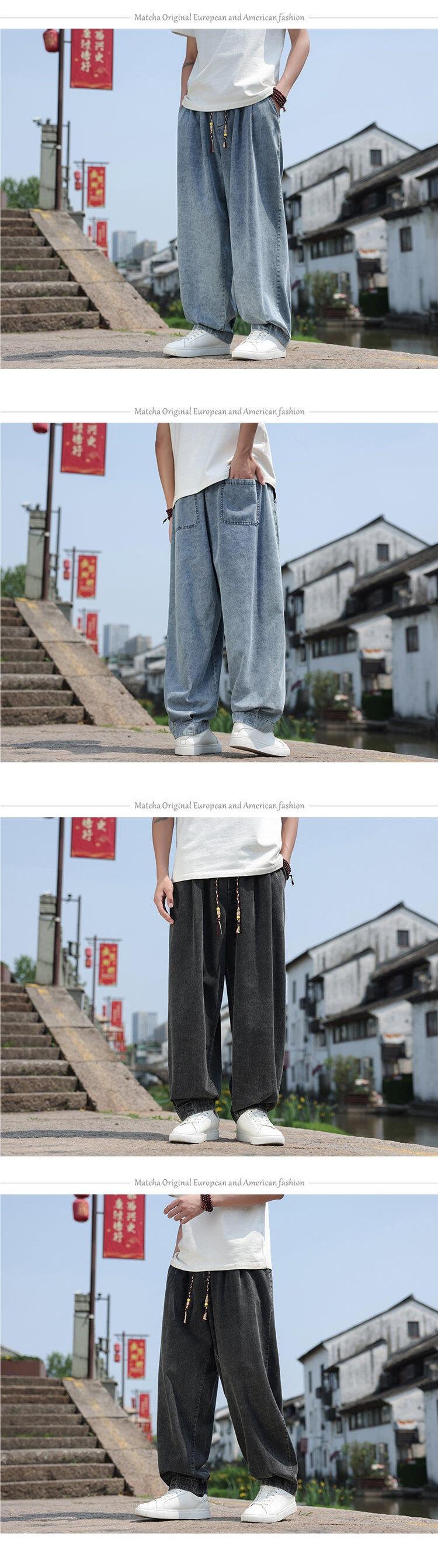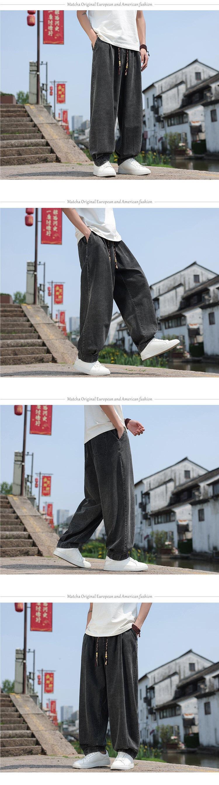 Compre Calças Casuais Soltas de Jeans Estilo Chinês de Verão Novas Calças Tamanho Grande Calças Casuais Macias e Respiráveis Calças Masculinas no atacado no Joom.pro