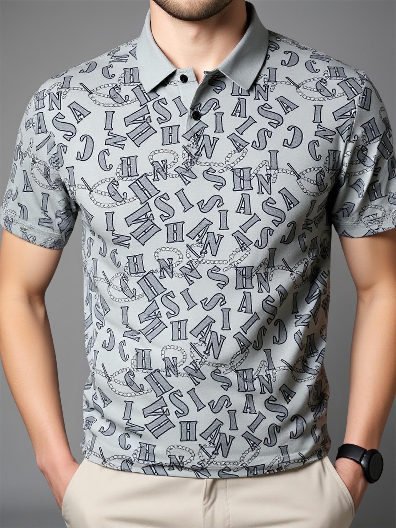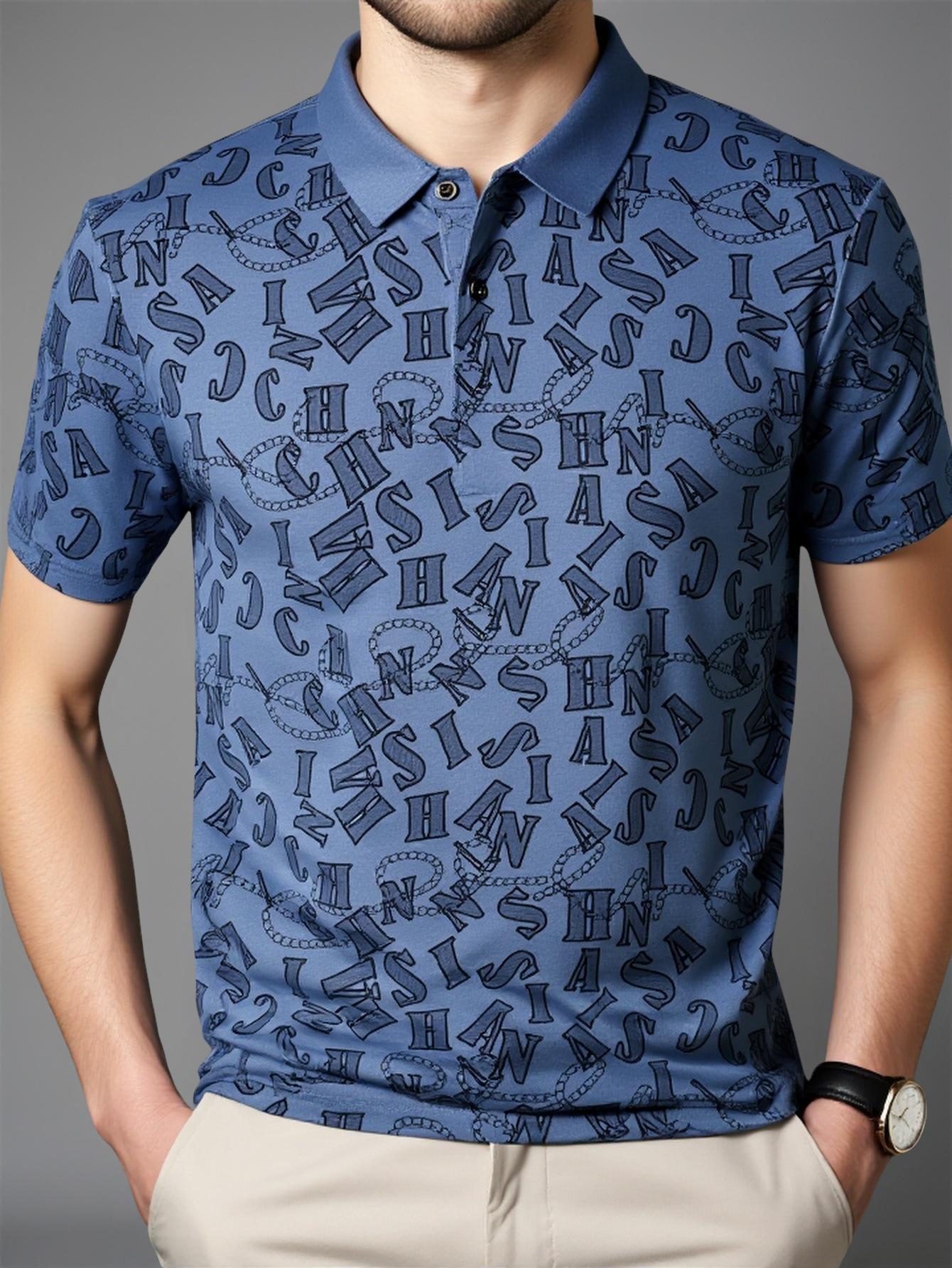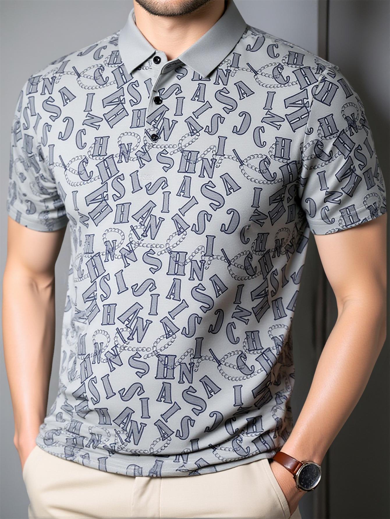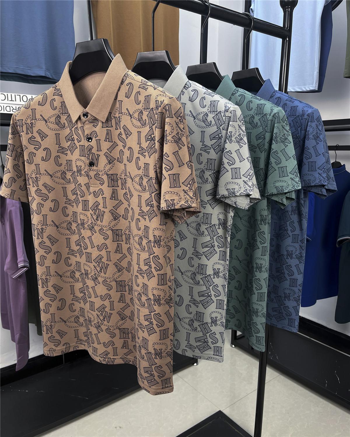 T-shirt de Verão de Seda Gelo Transfronteiriça de Manga Curta para Praia Estampa de Letras Masculina Camisa Polo Meia-Idade Pulôver Personalizado T-shirt de Manga Curta