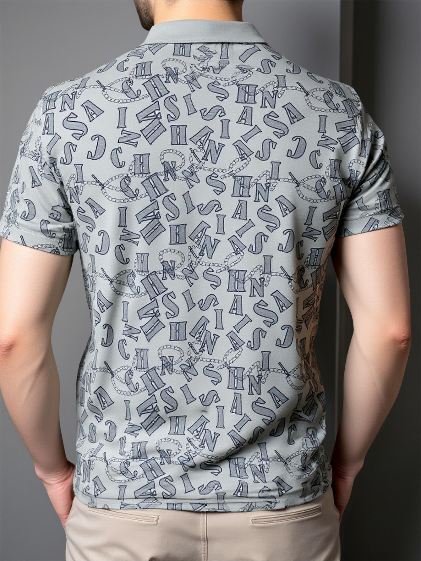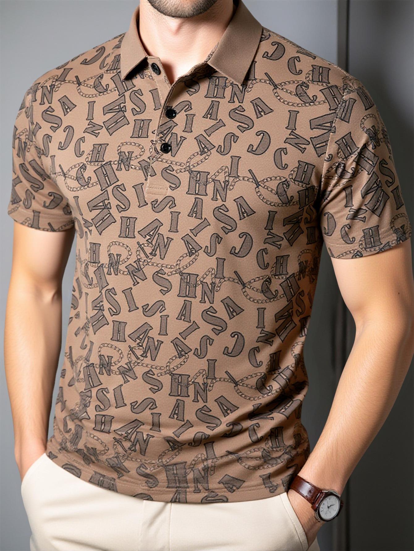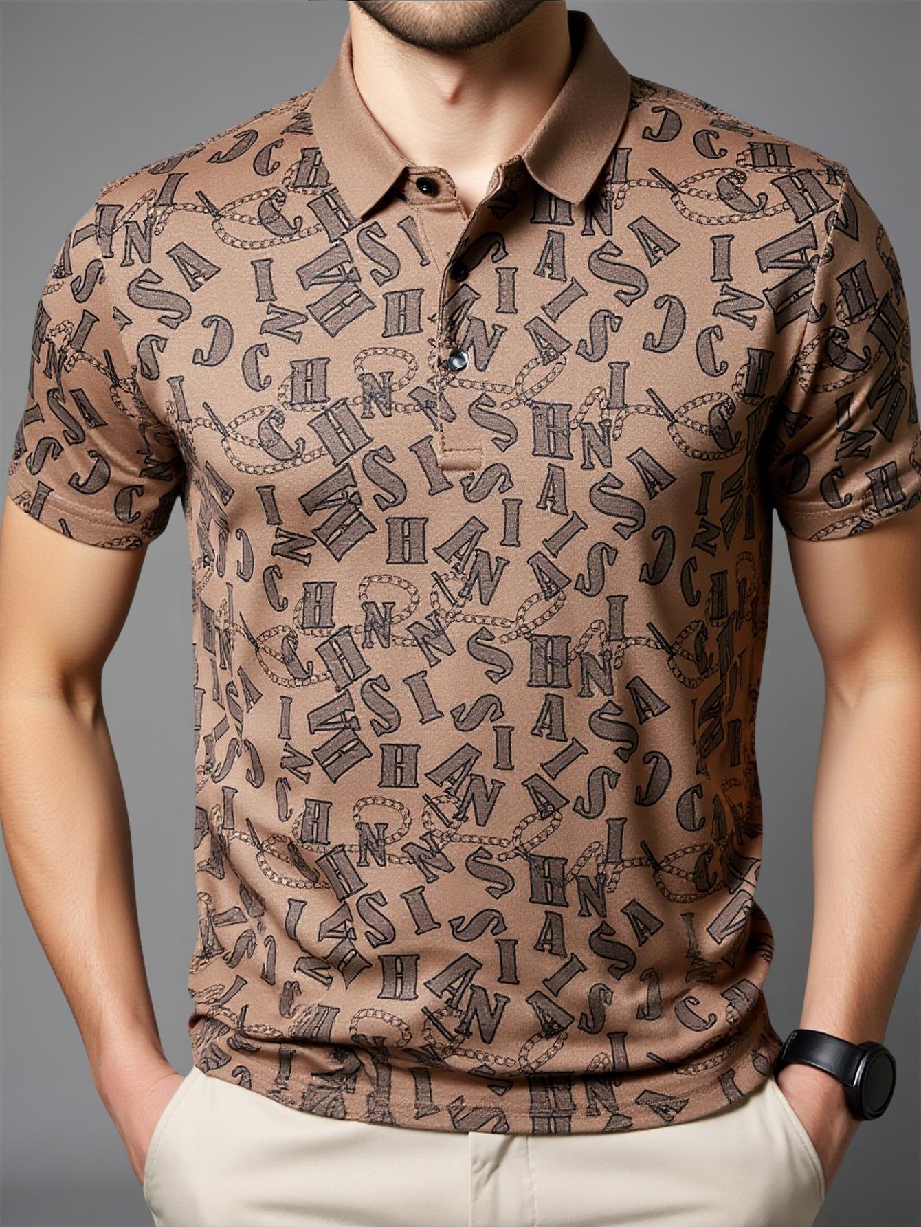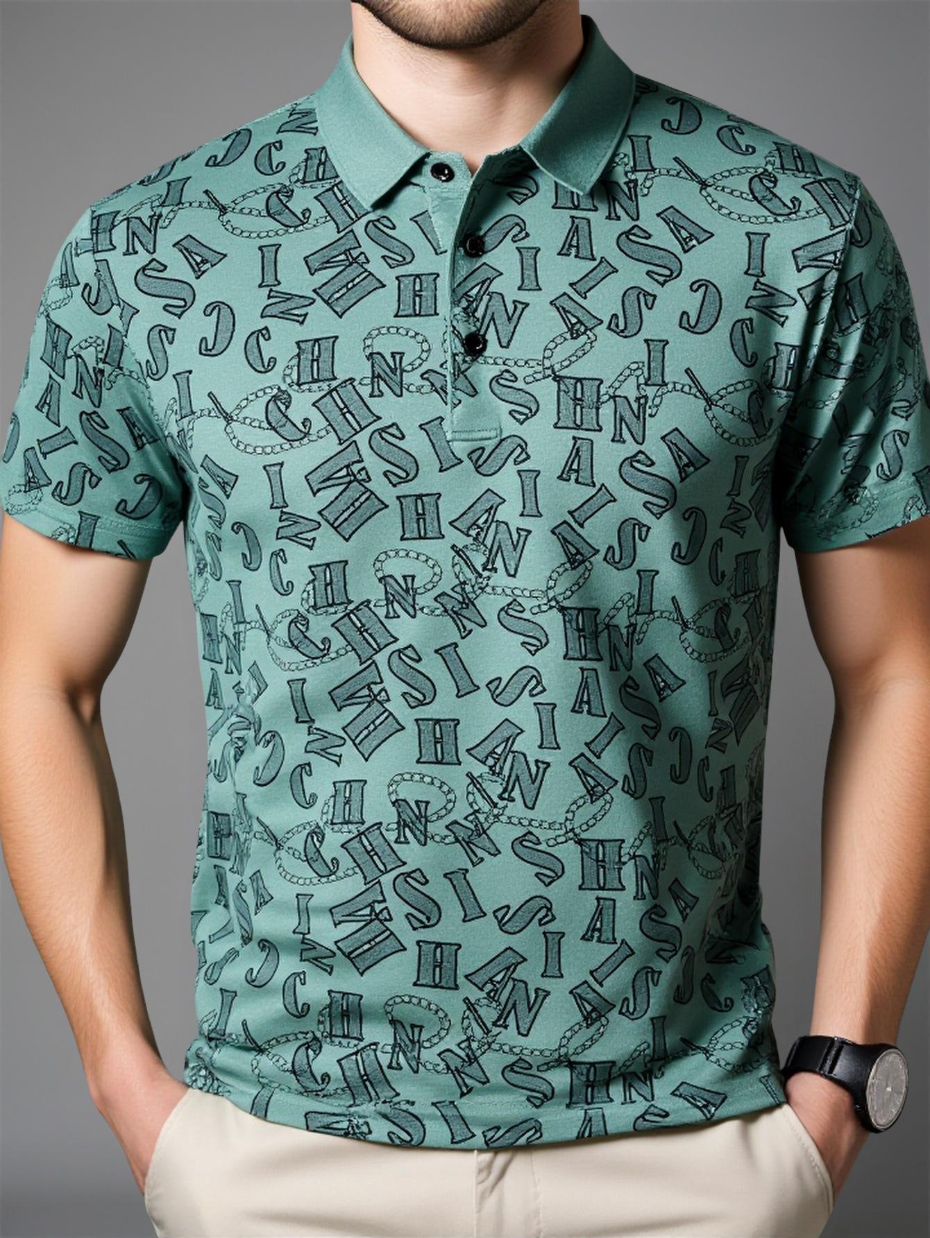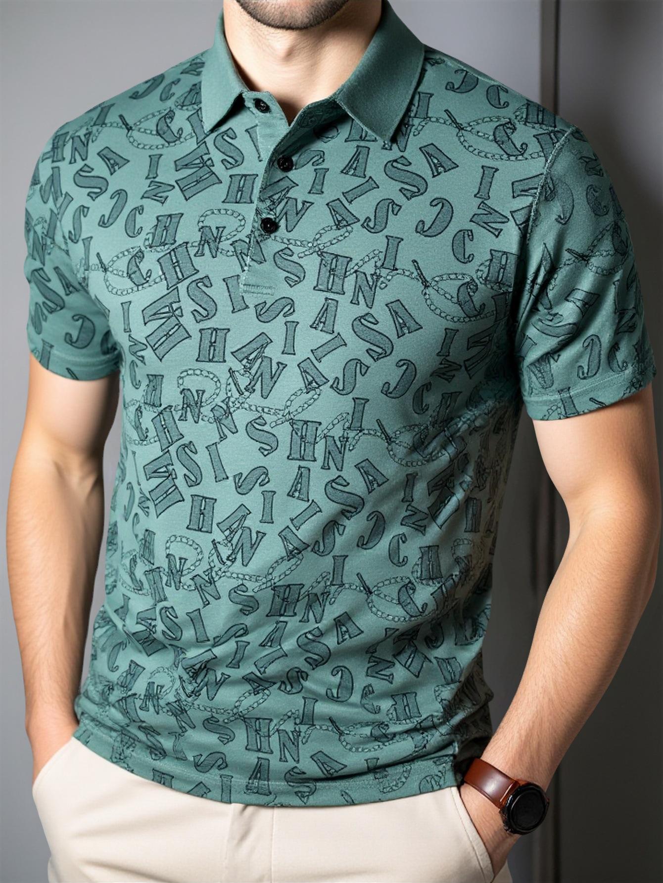 T-shirt de Verão de Seda Gelo Transfronteiriça de Manga Curta para Praia Estampa de Letras Masculina Camisa Polo Meia-Idade Pulôver Personalizado T-shirt de Manga Curta