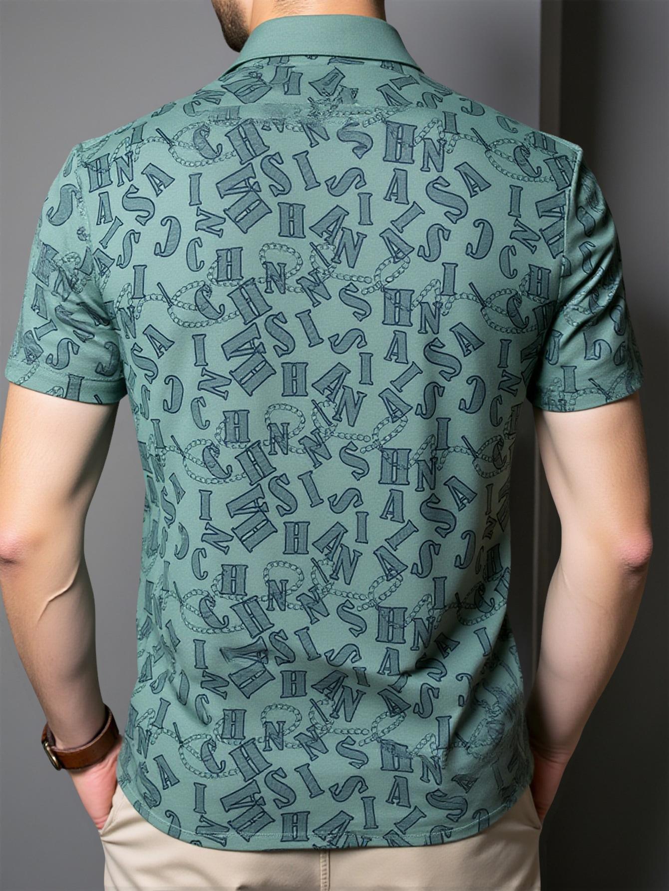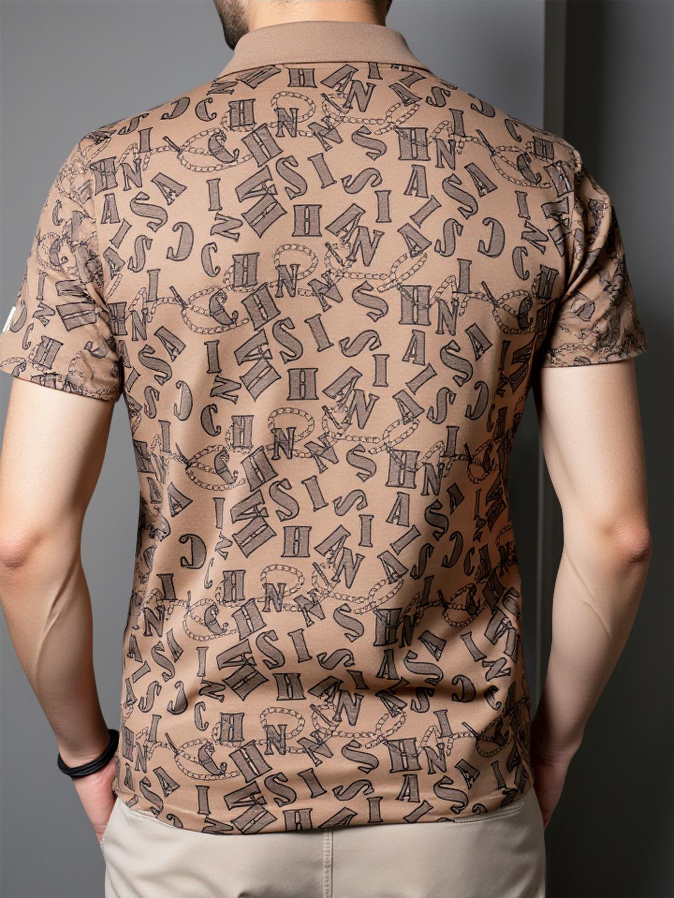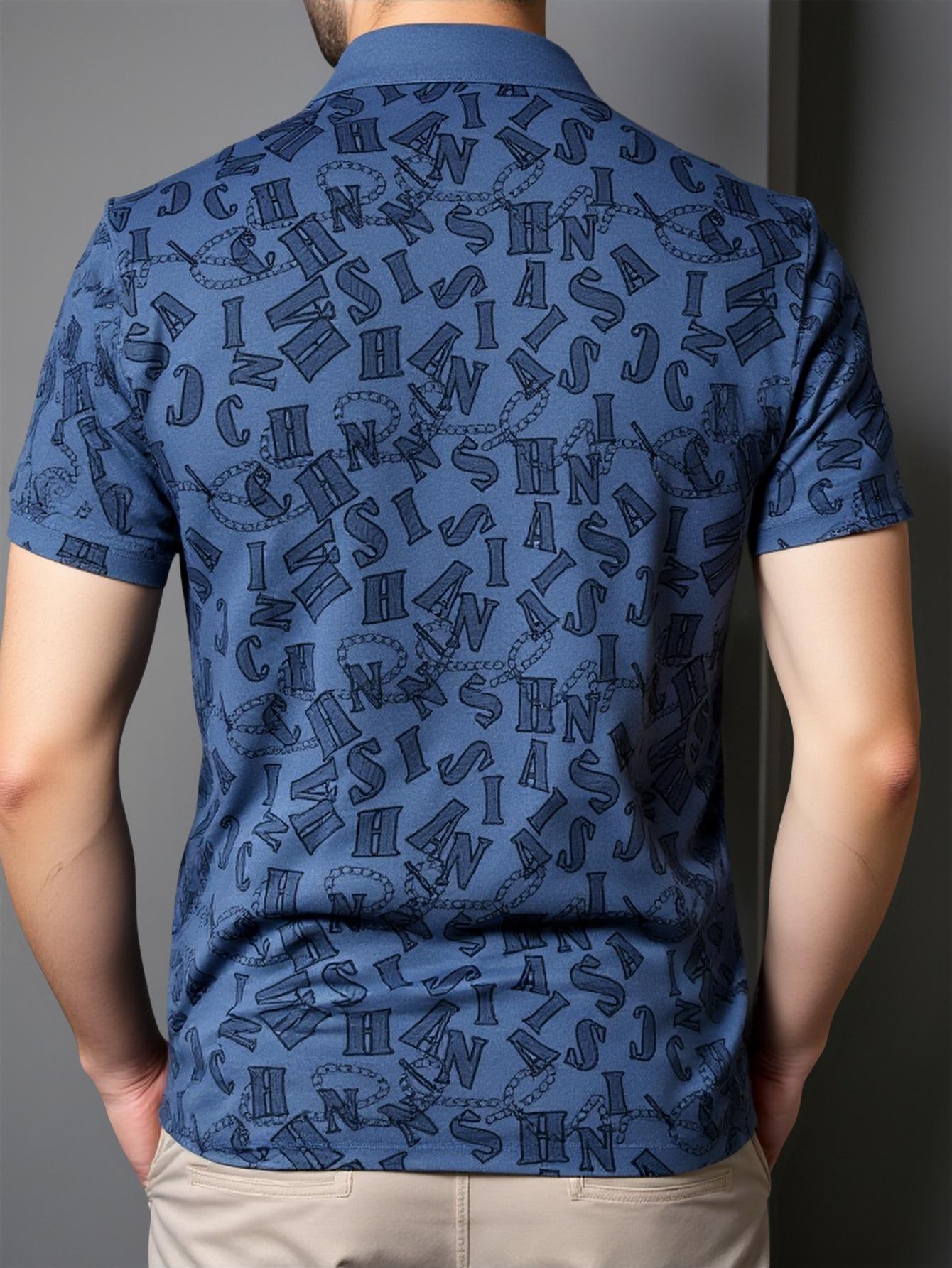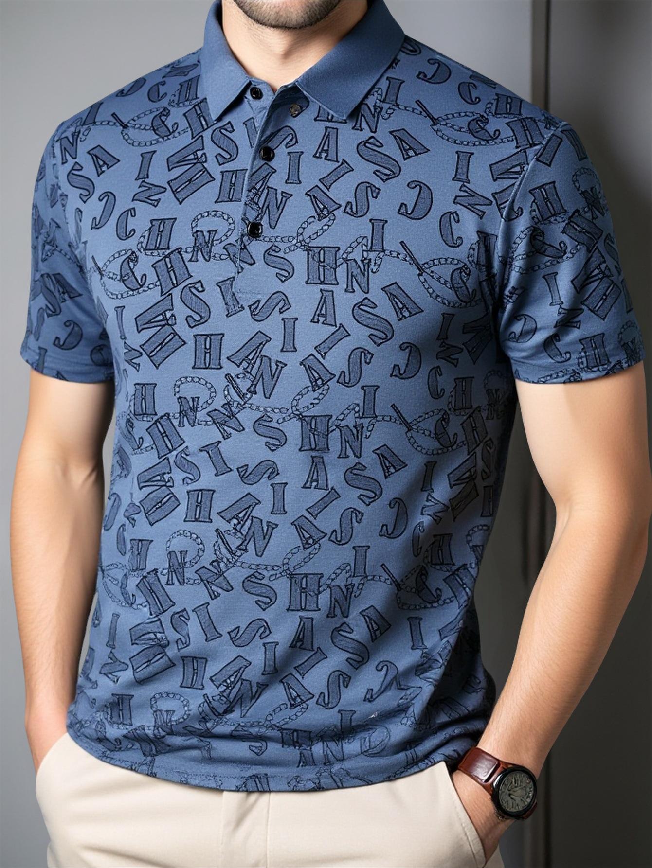 T-shirt de Verão de Seda Gelo Transfronteiriça de Manga Curta para Praia Estampa de Letras Masculina Camisa Polo Meia-Idade Pulôver Personalizado T-shirt de Manga Curta
