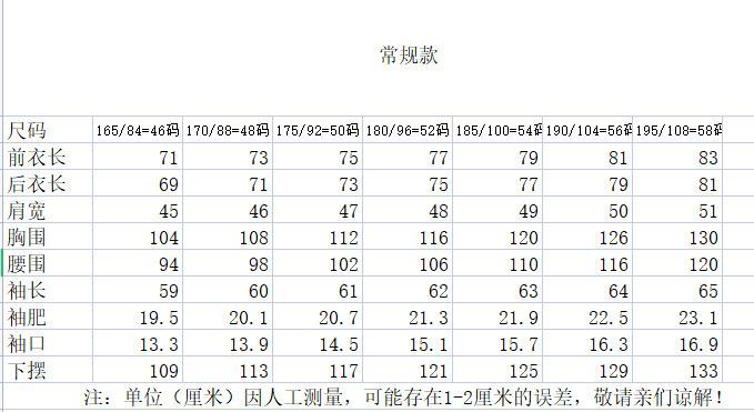 165/46 (pants size 29-30), 170/48 (pants 31-32 yards), 175/50 (pants size 33-34), 180/52 (pants 35-36 yards), ...