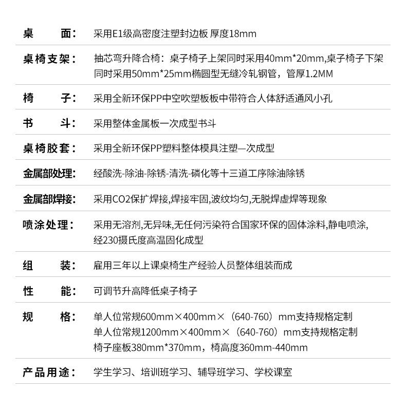 Alunos do Ensino Fundamental e Médio Mesas e Cadeiras de Sala de Aula Elevatórias Mesa de Escritório Infantil para Casa Mesa de Treinamento Escolar Conjunto de Mesa e Cadeira de Estudo