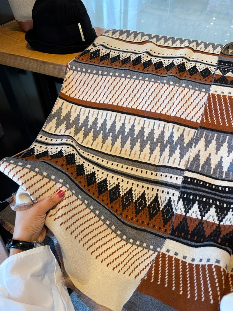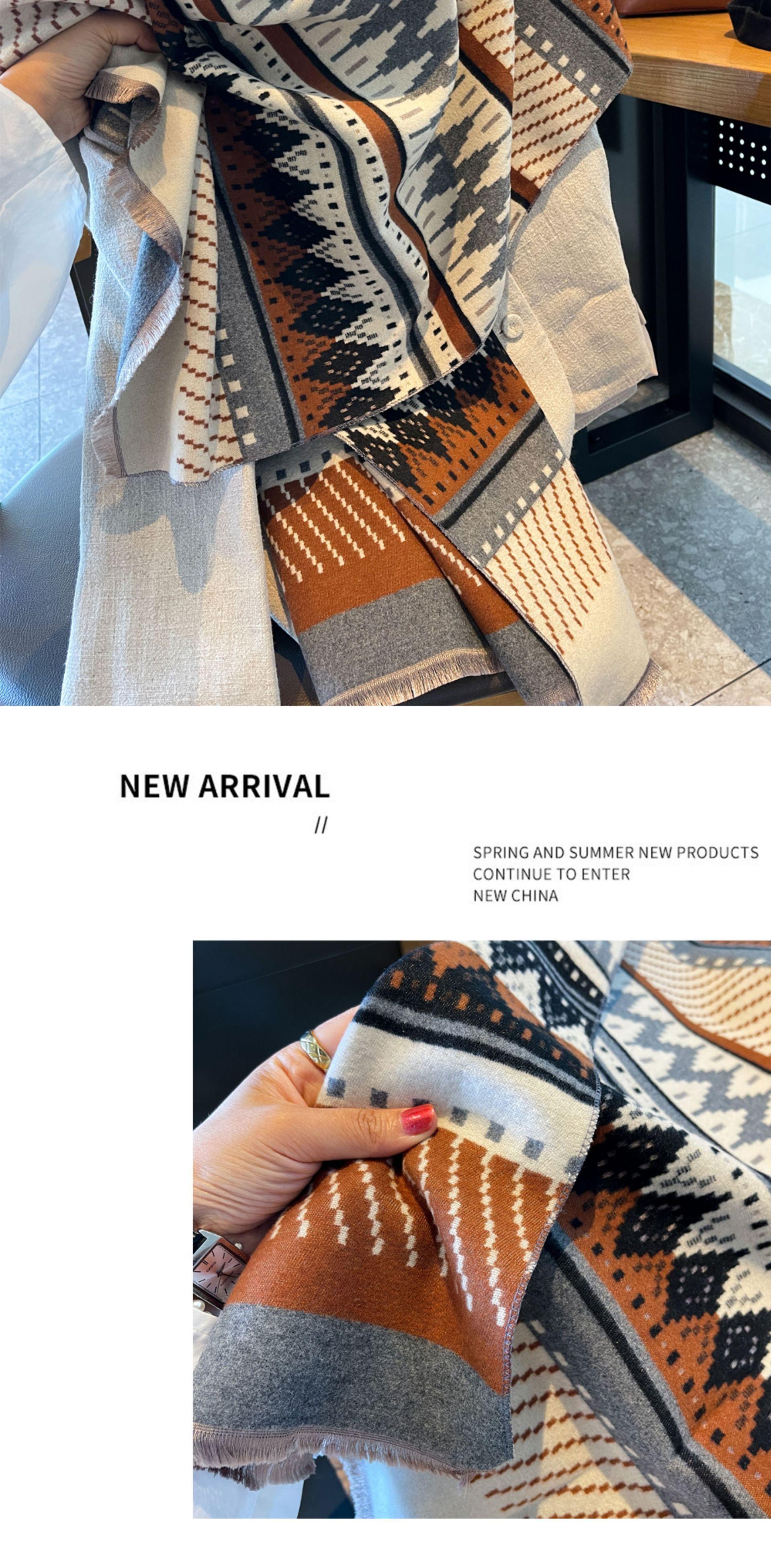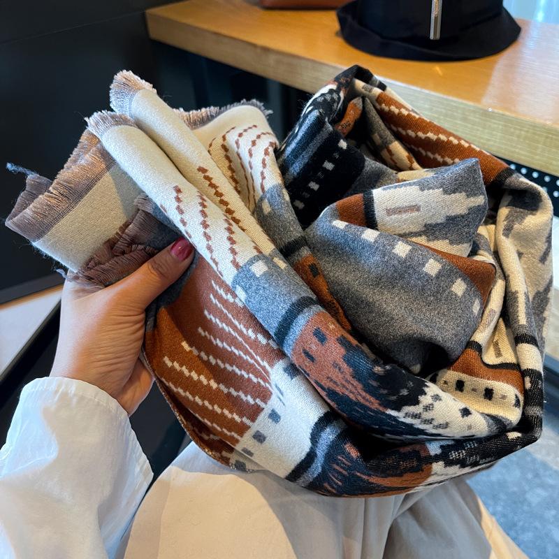 Lindo cachecol losango cor Maillard outono e inverno cashmere feminino espessado quente xale grande dupla face dupla utilização