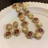 2024 Nova Moda Requintada Colar de Pérola de Imitação de Diamante Completo Suave Celebridade Elegante Brinco Conjunto de Três Peças Tendência