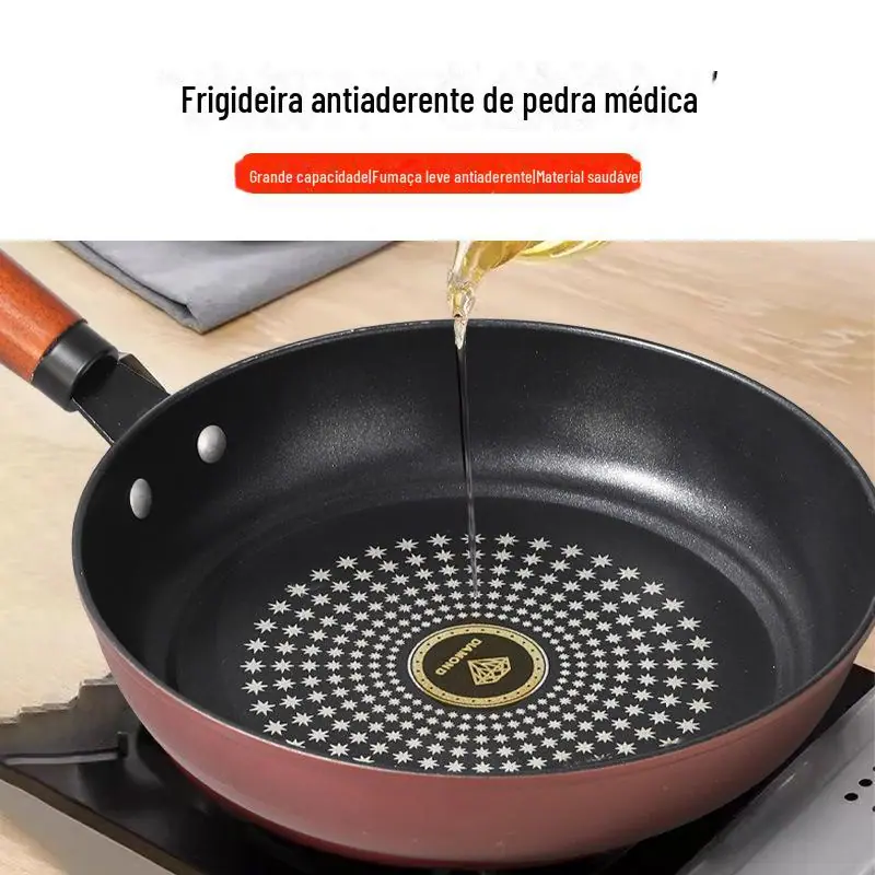 Frigideira Multifuncional Antiaderente Feita de Pedra Médica para Uso Doméstico, Adequada Tanto para Fritar Quanto para Refogar, Compatível com Fogões de Indução e Fogões a Gás, Atacado