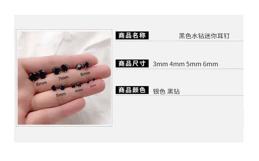 Brincos Versáteis de Zircônia Preta, Unissex, Brincos Mini Simples para Cartilagem da Orelha, Brincos Exquisitos e Compactos, Atacado de Joias para Orelha