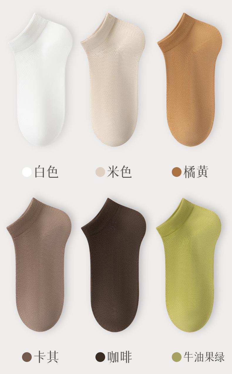 White, Black, Beige, Khaki, Brown, Avocado green, Orange, Caramel color, 5 pairs of white, 5 pairs of black, B...