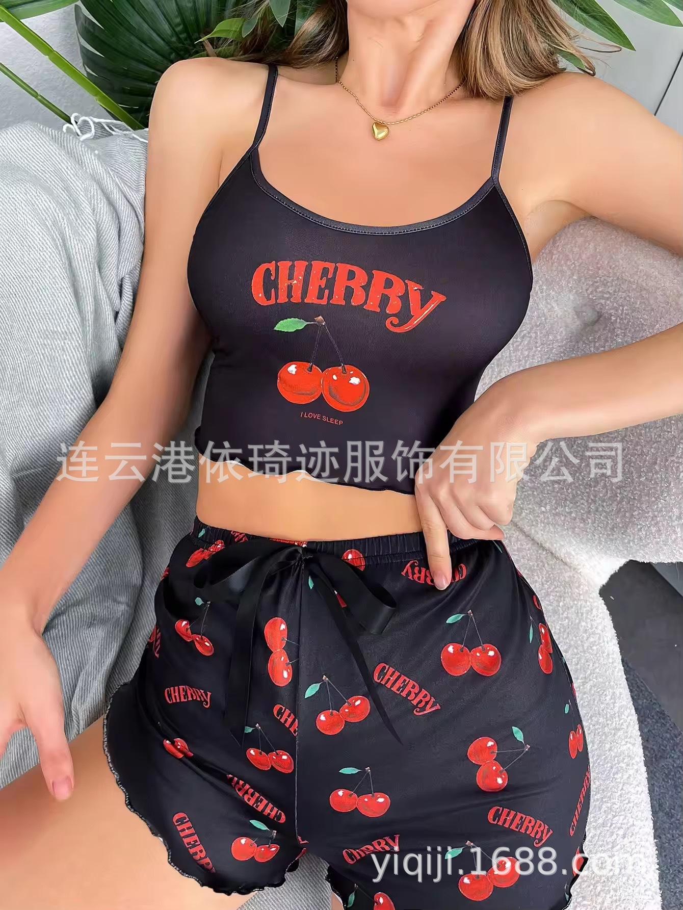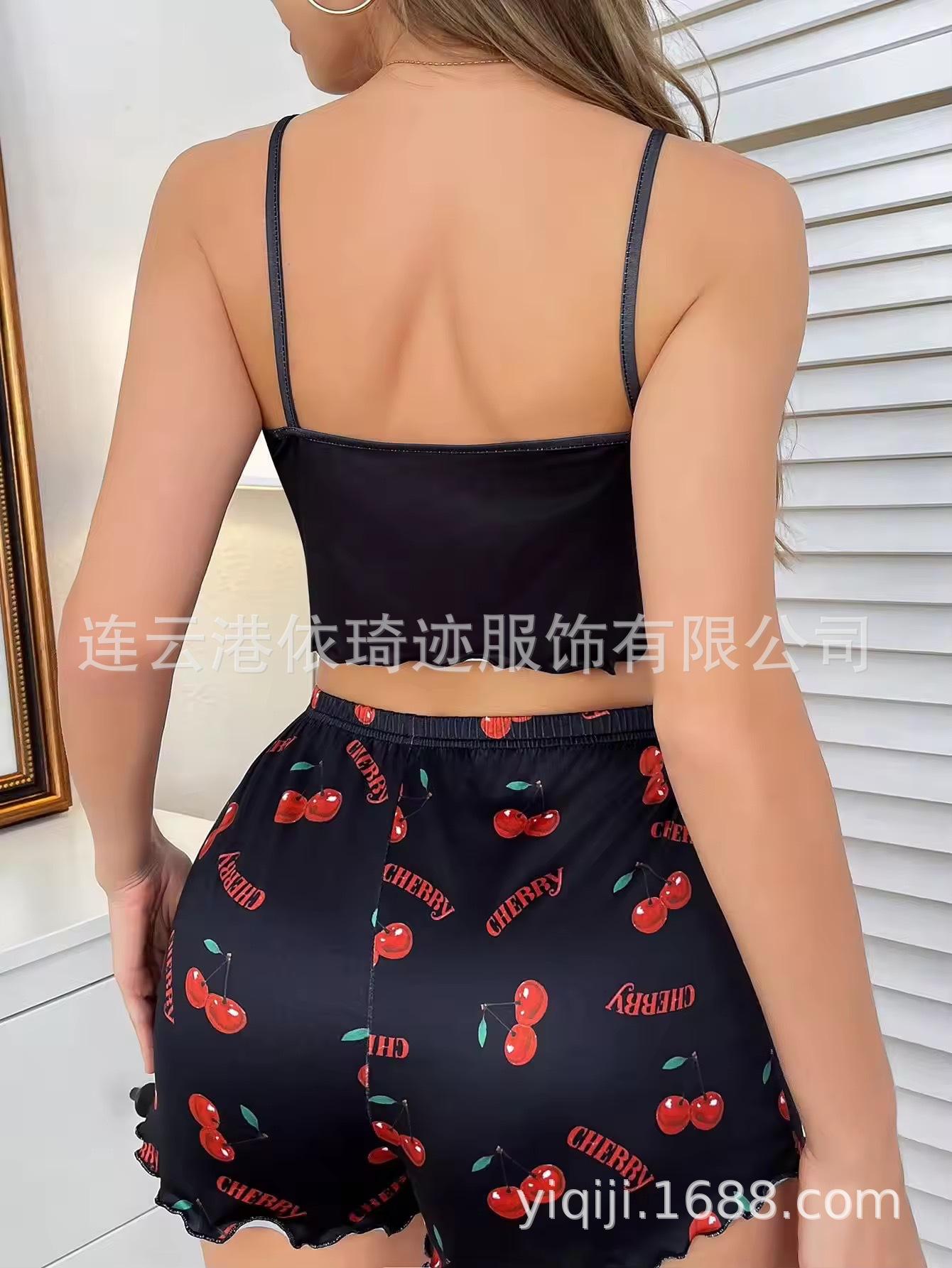 Compre Europeu e Americano Cross-border Home Clothes Renda Sling Shorts terno confortável elástico Home Casual Outwear Pijamas para Mulheres no atacado no Joom.pro