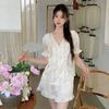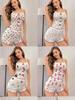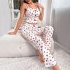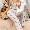 Amazon Europa e Estados Unidos novo sexy malha costura impresso pijamas duas peças roupas femininas para casa pijamas