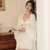 Desejo Puro Vento Peito Pequeno Camisola de Seda Gelo Feminina 2024 Verão Novo Fina Francesa Alça de Alta Qualidade Pijama Branco Renda