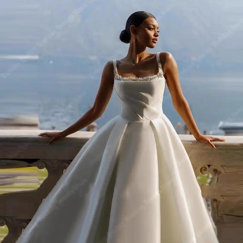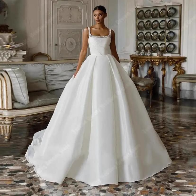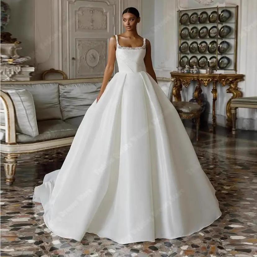 Vestido de Noiva Principal Sem Alças 2025 Novo Cetim Vestido Principal com Textura de Alta Qualidade e Cauda Longa, Vestido de Boas-Vindas de Casamento Francês de Alta Qualidade