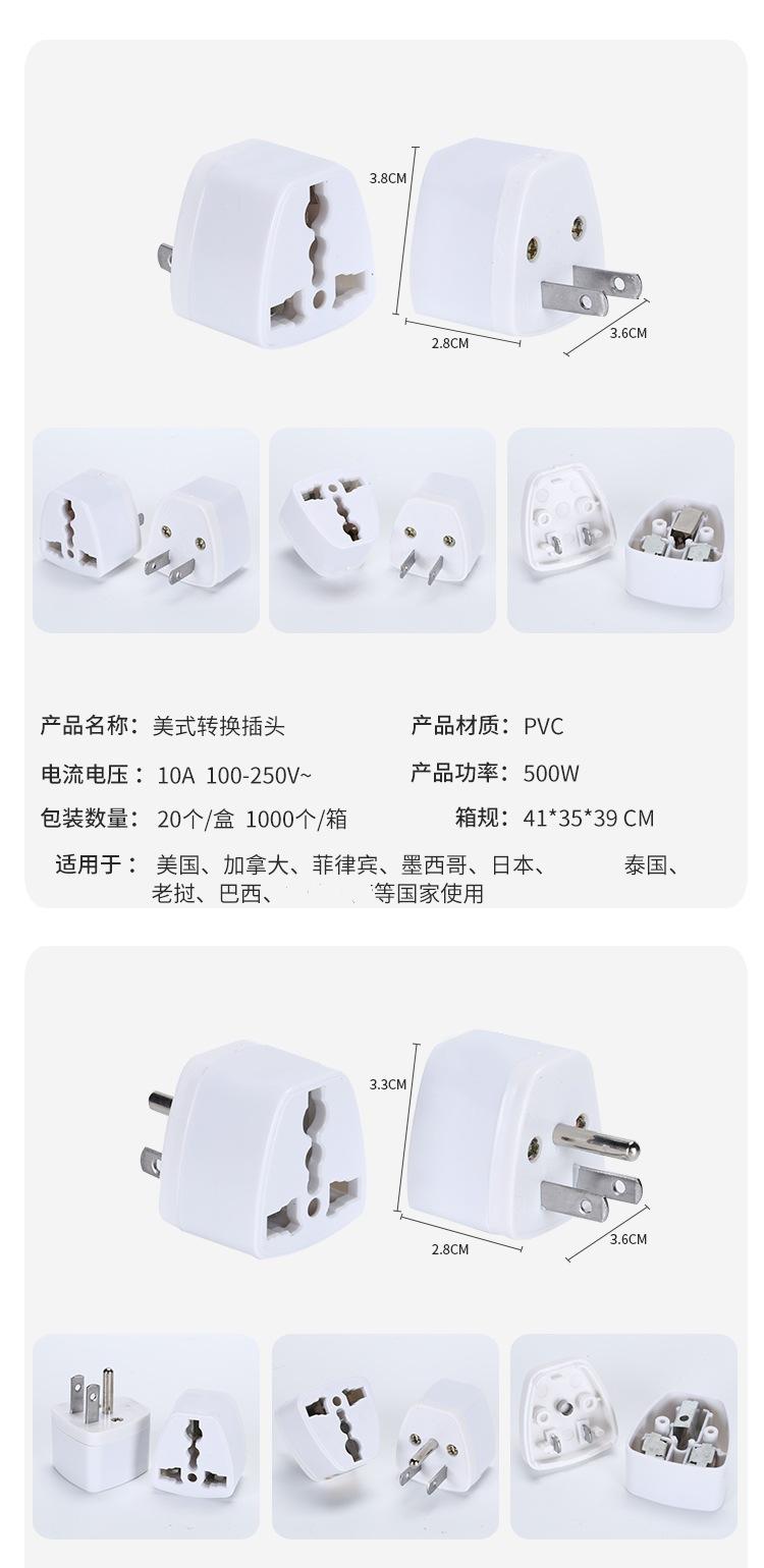Padrão americano Padrão americano Plug de conversão de viagem de três pinos Adaptador de plugue carregador de celular Tomada multifuncional