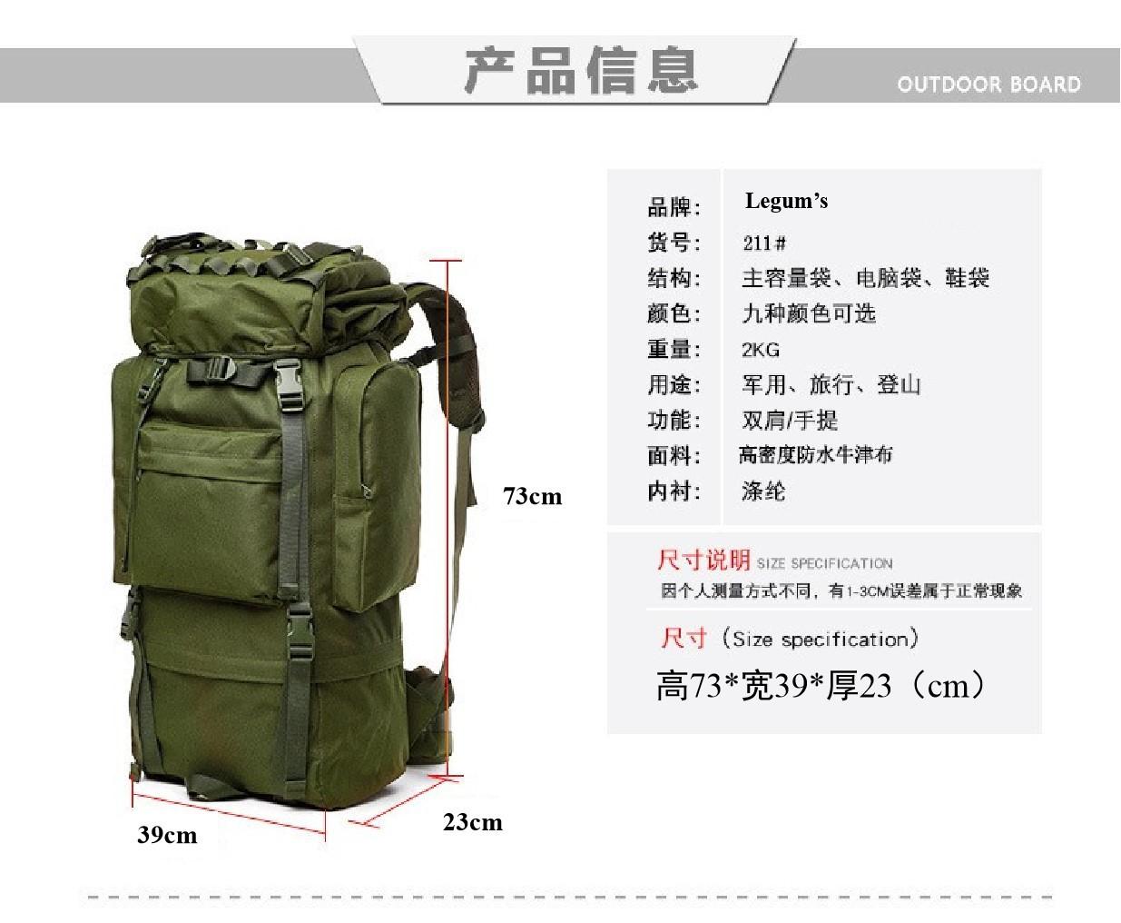 Mochila Tática Personalizada de Fábrica 65 Litros Camuflada para Montanhismo ao Ar Livre Viagem Caminhada Mochila Grande Multifuncional