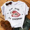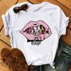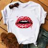 2025 Nova Camiseta Feminina Manga Curta Solta Estampa de Lábios Moderna Tamanho Grande Manga Curta Camiseta Feminina