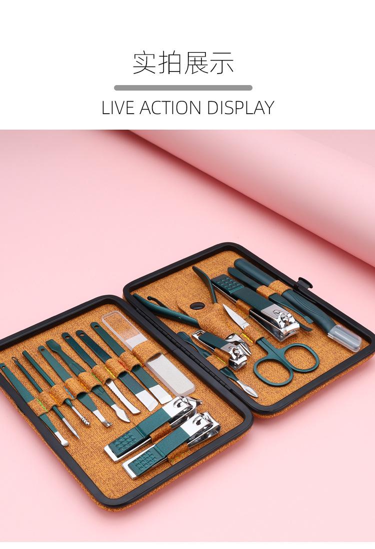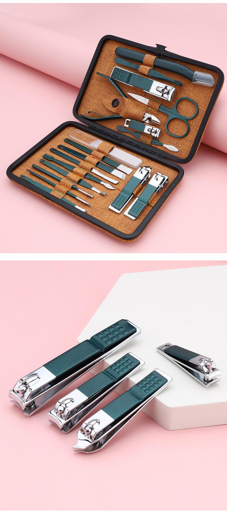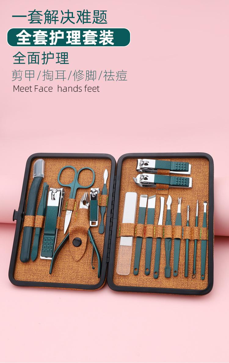 Conjunto de Tesouras de Unha 18 Peças Conjunto de Manicure com Cortadores de Unha, Alicates de Cutícula, Palito de Ouvido, Lixa, Agulha para Acne, Pinças de Sobrancelha, Feito de Aço Inoxidável
