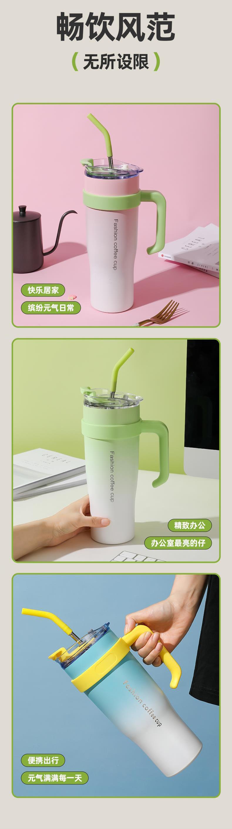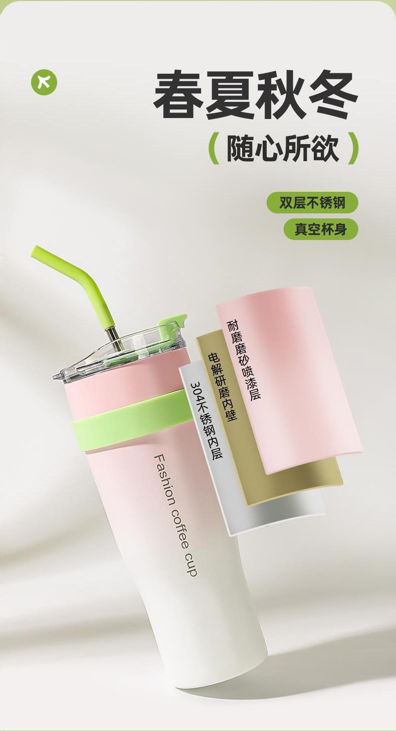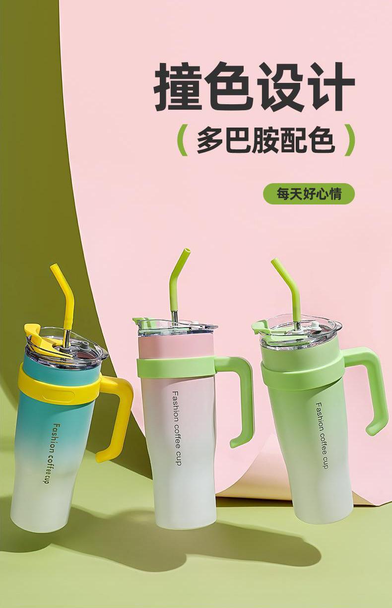 Women's american vacuum ice cup large capacity portable cold storage for home straw cup gradient color thermos...