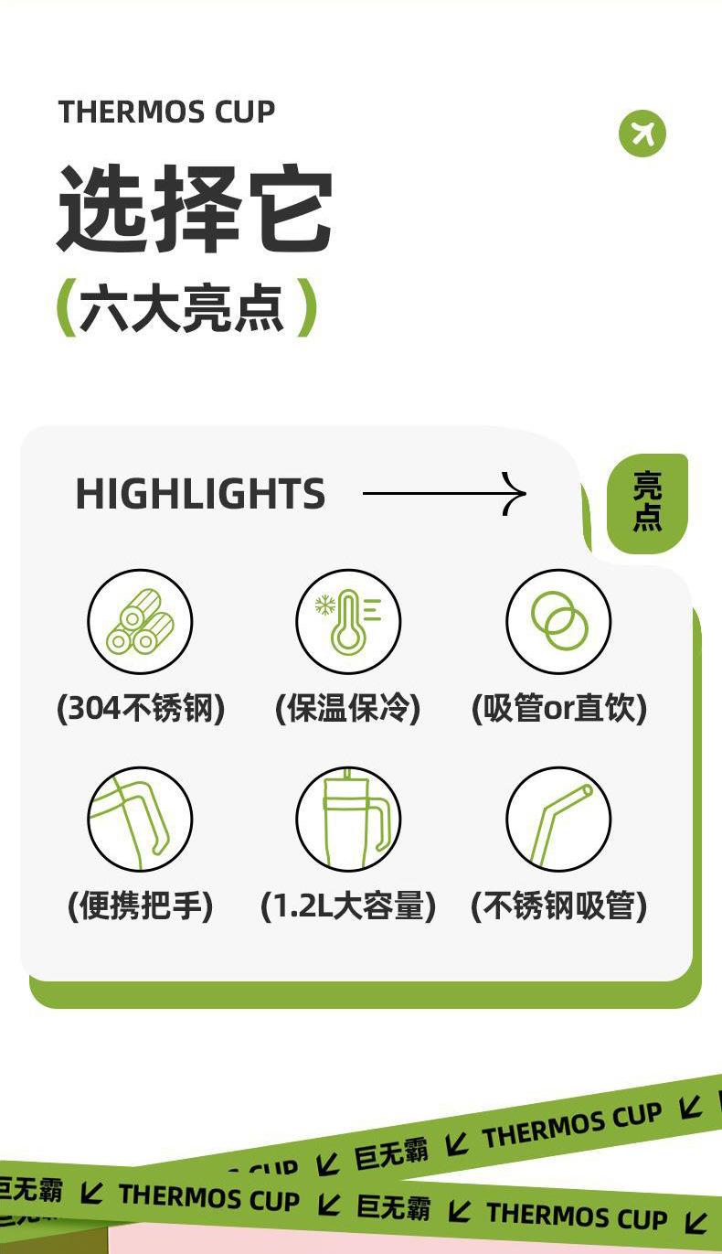 Cross-border handle ice cup large capacity 304 stainless steel thermos cup with straw car 40oz car cup high-lo...