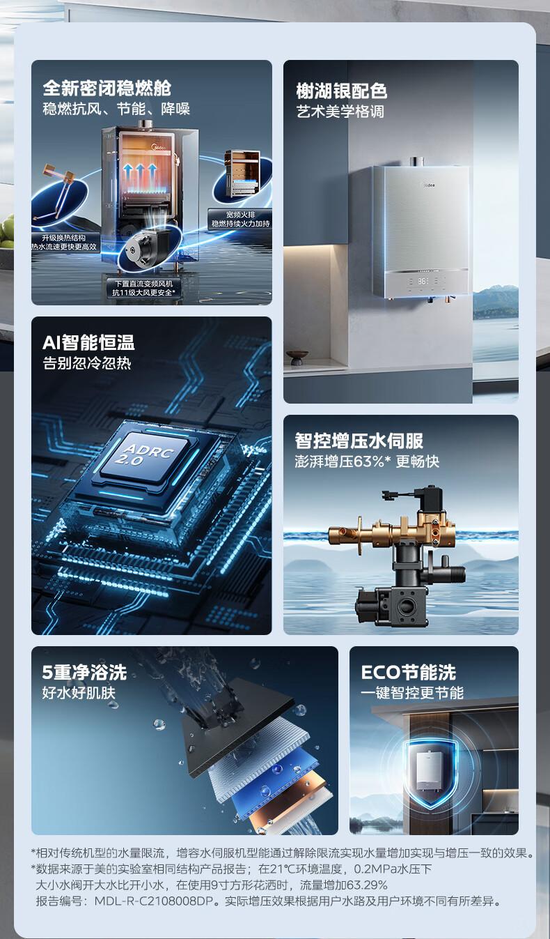 Aquecedor de água a gás Midea 16 litros doméstico gás natural termostato JSQ30-Magic Pro