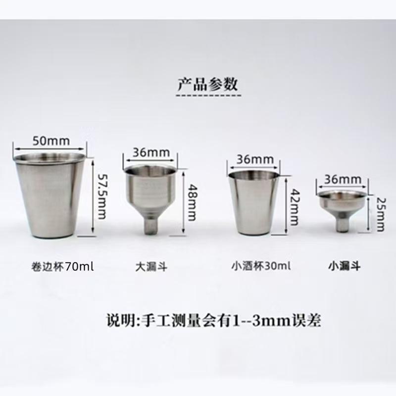 Small funnel, Big funnel, Wine glass 30ml, 70ml medium cup, 300ml + leather case (304), 500ml + leather case (...